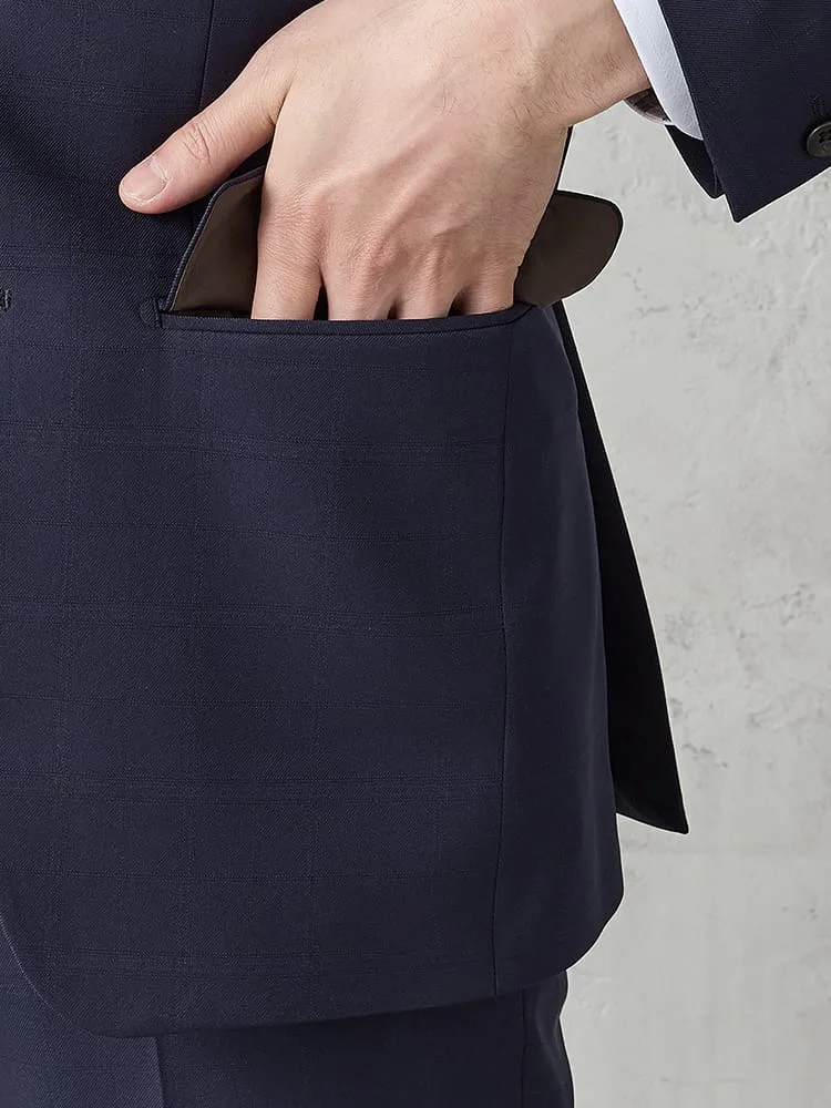 【上下洗える】2釦スーツ【クラシコ】チェック ネイビー
