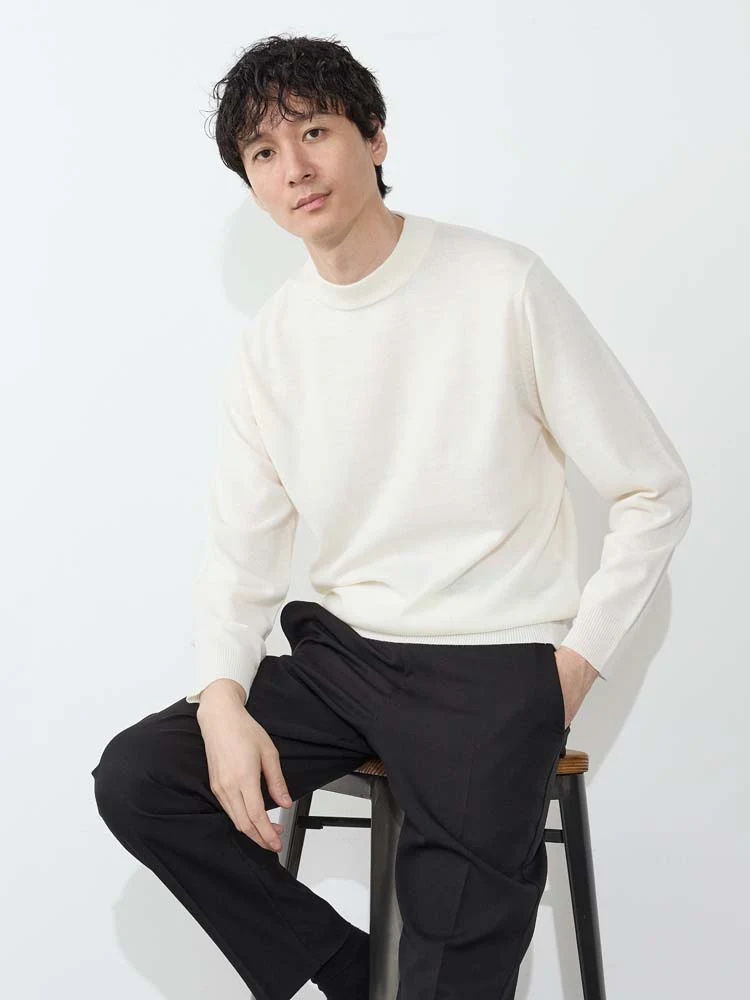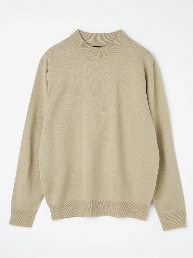 首元がすっきりと見えるモックネックのニットです。