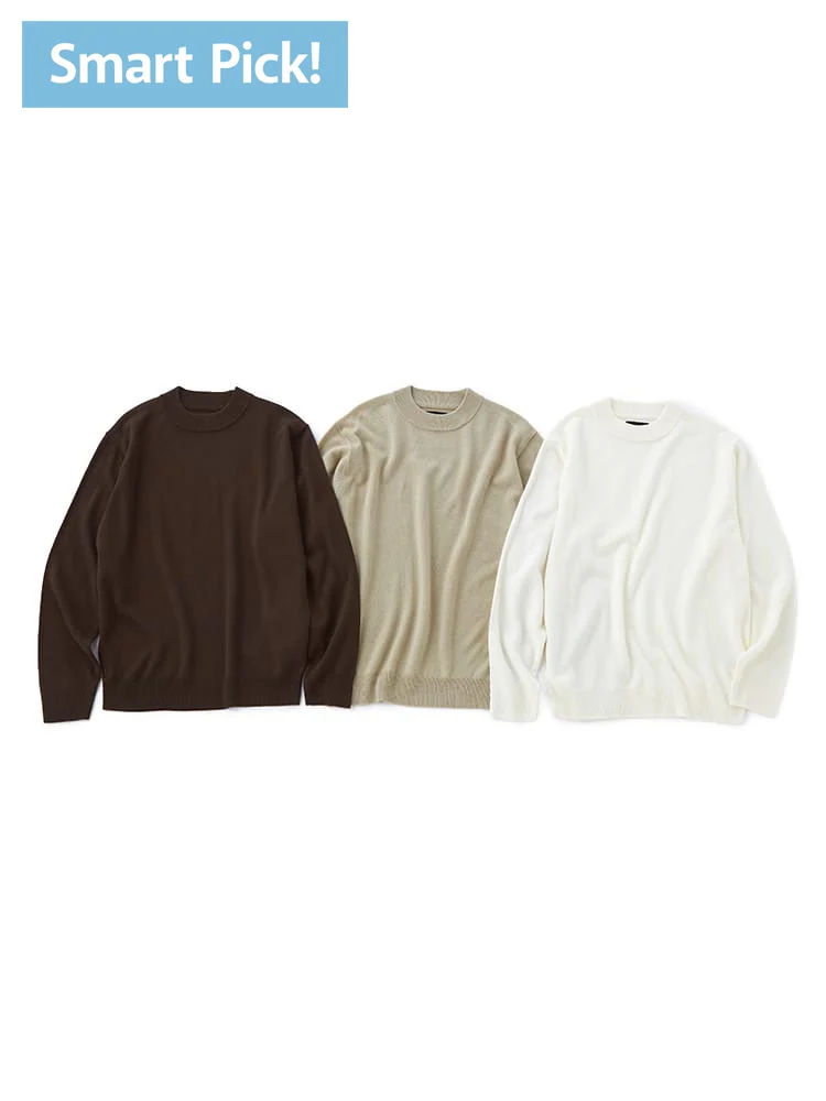 【3点パック/Smart Pick!】モックネック ベーシックニット Bセット(オフホワイト&ベージュ&ブラウン)