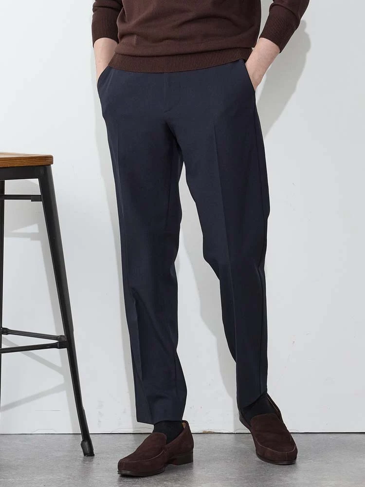 シンプルで合わせやすいスラックス2色【ネイビー・ミディアムグレー】をパックにしてお届けします。