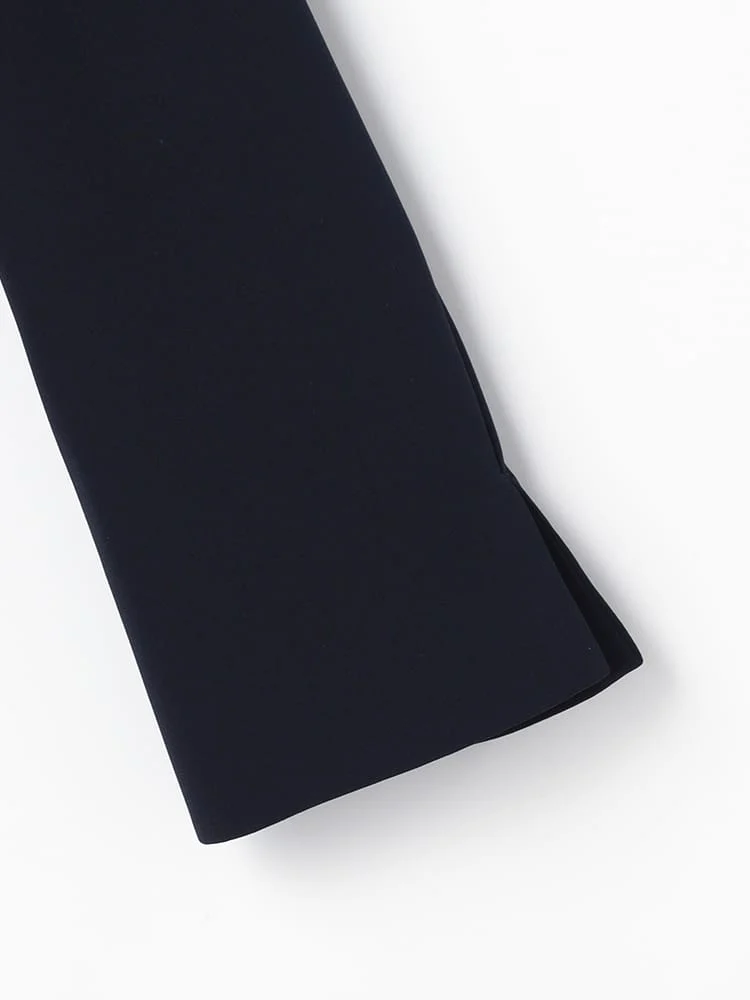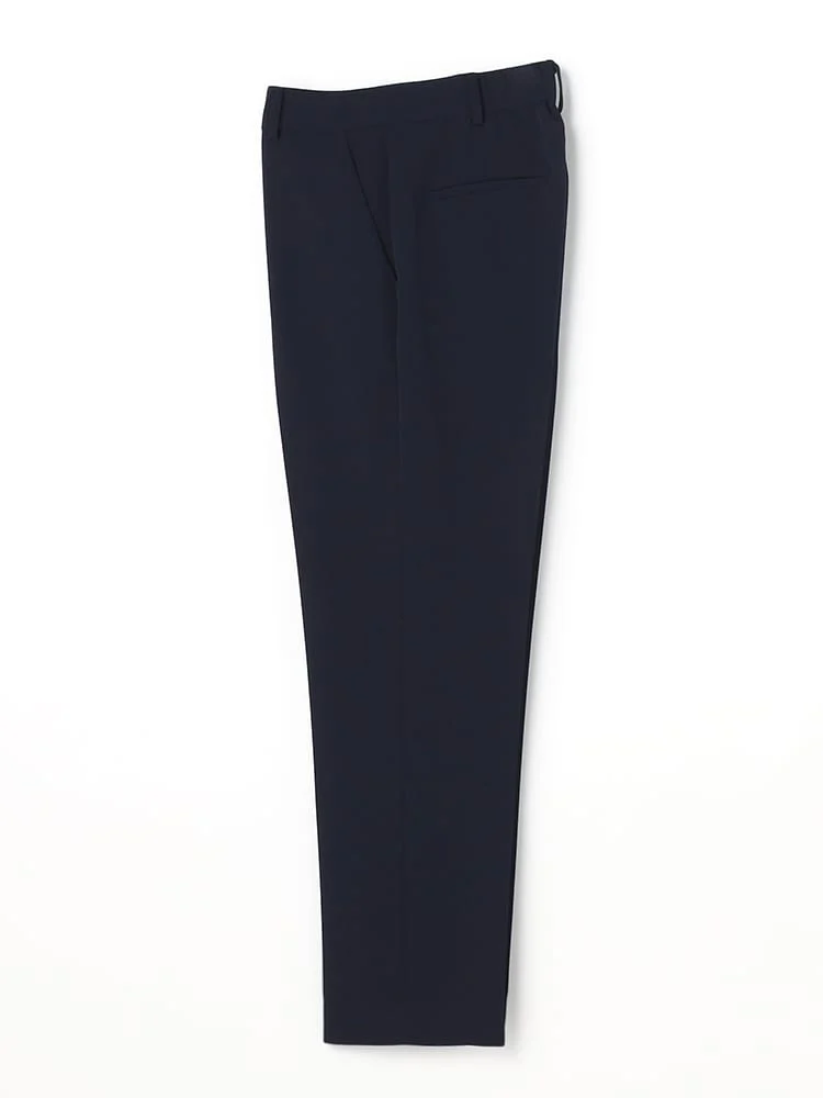 きちんとした印象を確保しつつ、ウォッシャブルでストレッチも効いた使いやすい素材を用いたセットアップ。