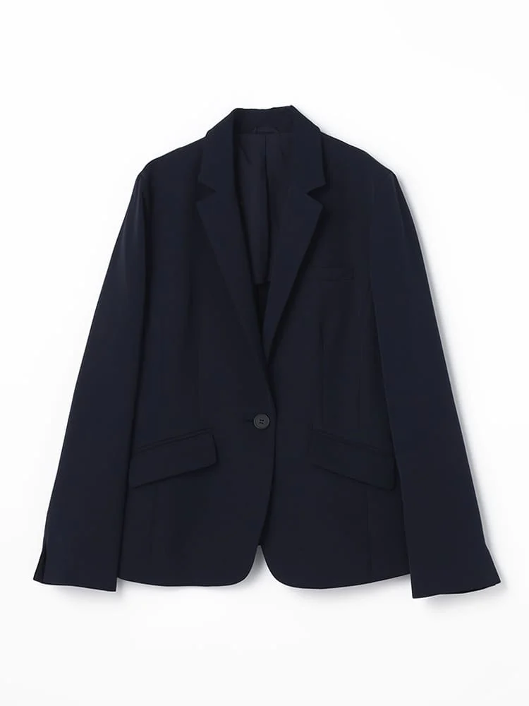 ジャケットはシンプルなカットソーを合わせるだけでも着こなしが決まるラペル付き。
