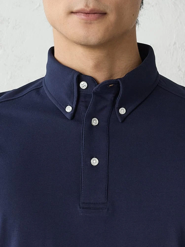 ストレッチボタンダウンポロシャツブラック/ネイビー