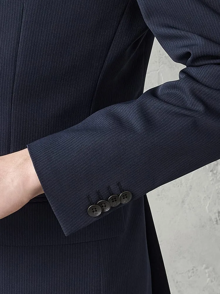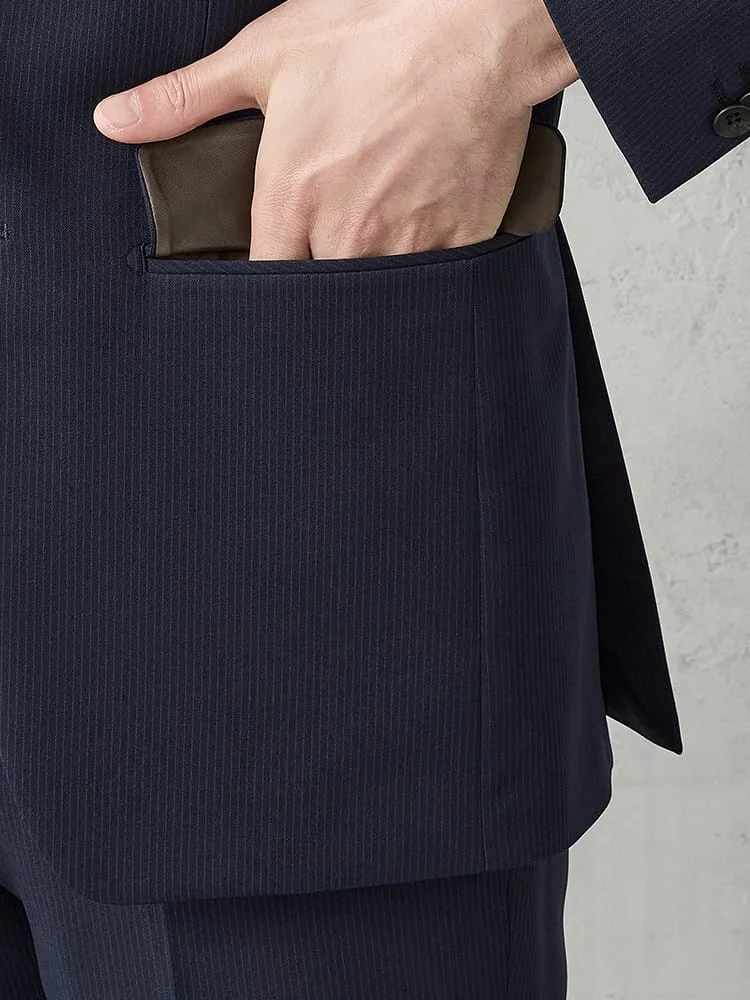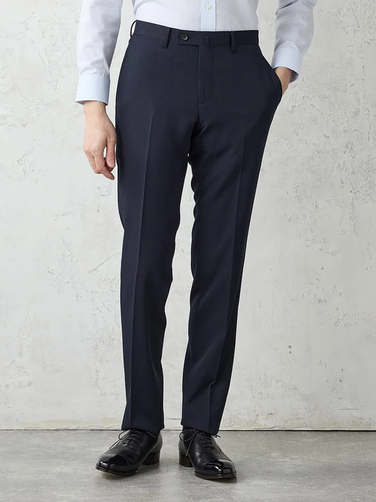 【上下洗える/高通気】WEB限定スーツツーパンツ4WAYストレッチストライプネイビー
