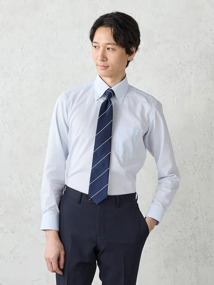 形態安定機能が施されており、洗濯後もシワになりにくく、常にきれいなシルエットを保てます。