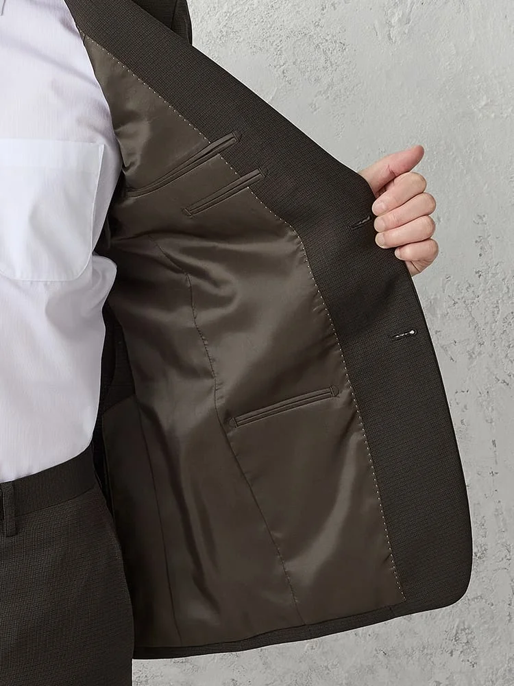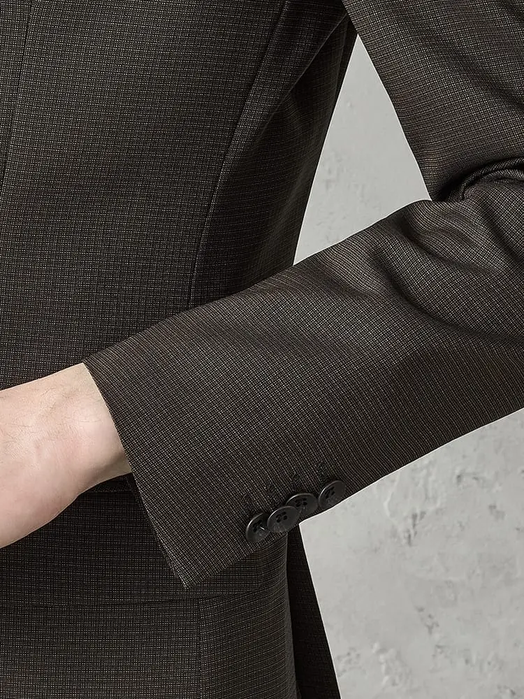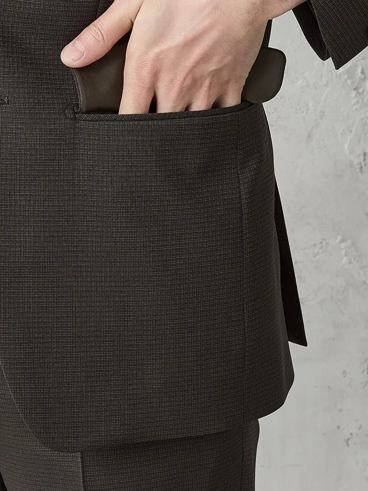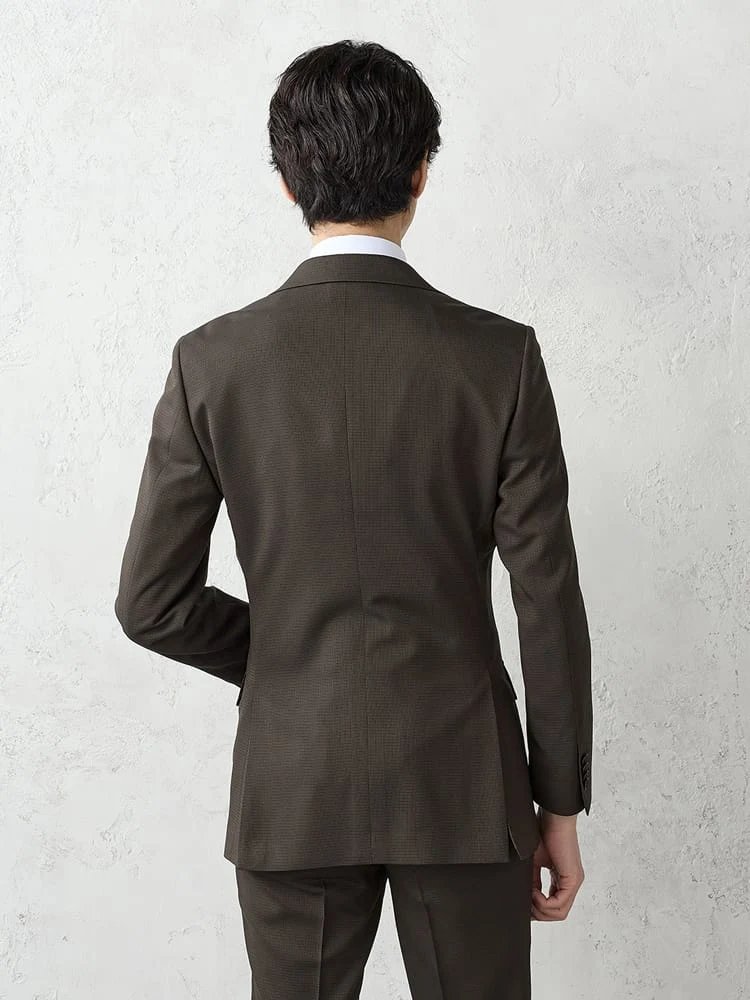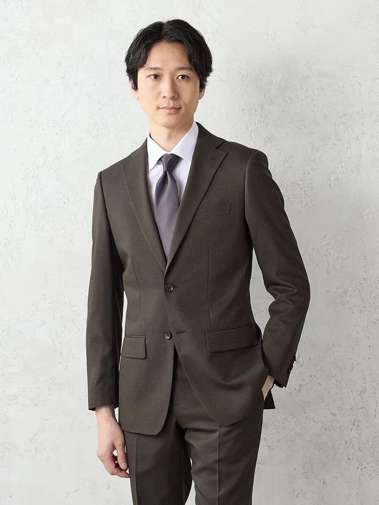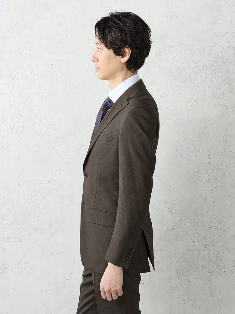【上下洗える/高通気】WEB限定スーツ4WAYストレッチミニチェックブラウン