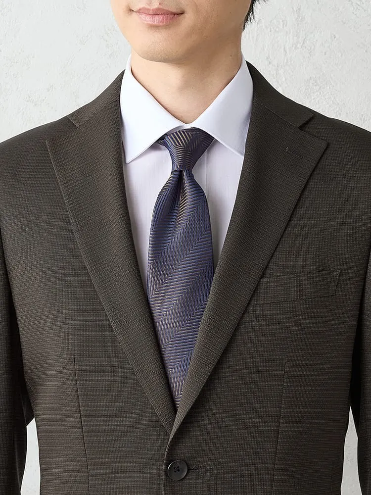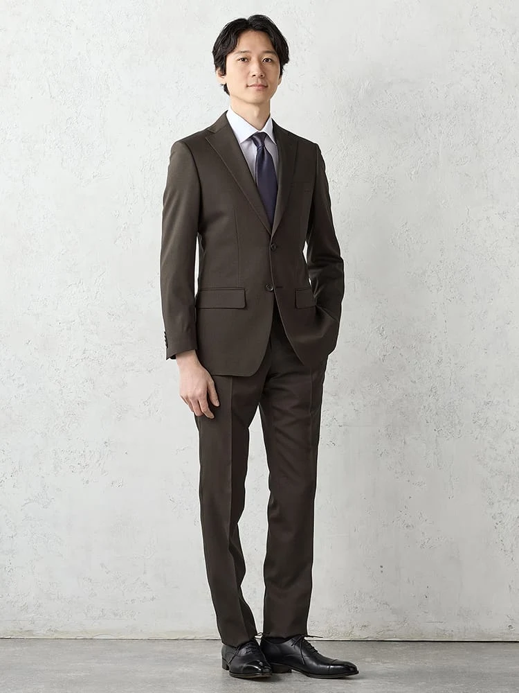 【WEB限定/上下洗える】2釦スーツヘリンボンブラウン