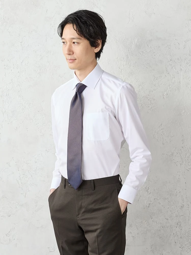 形態安定機能が施されており、洗濯後もシワになりにくく、常にきれいなシルエットを保てます。