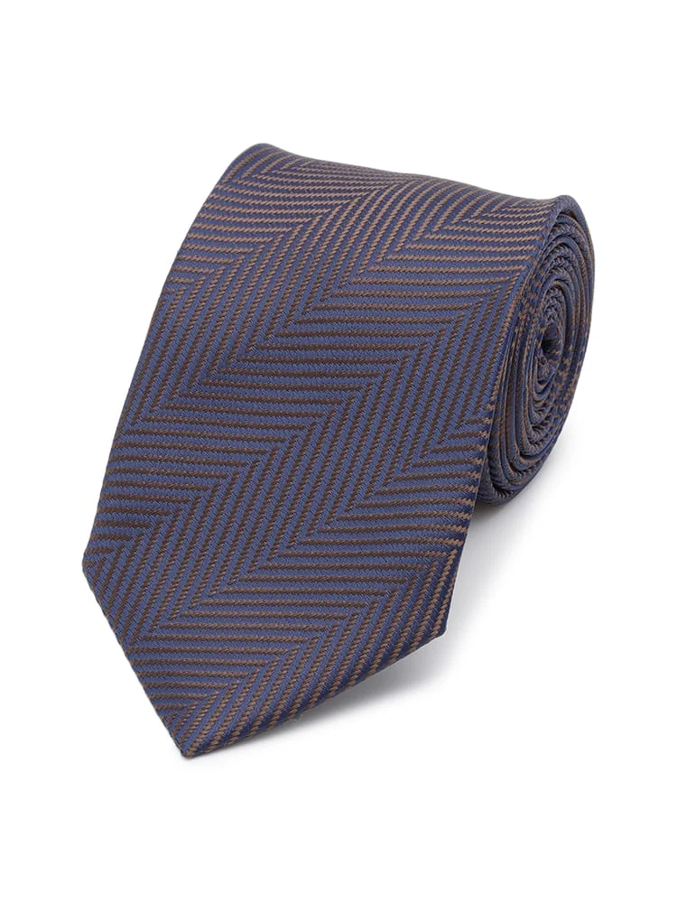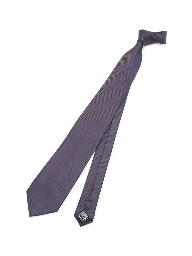 ヘリンボンストライプ柄でやや艶のあるネクタイ。