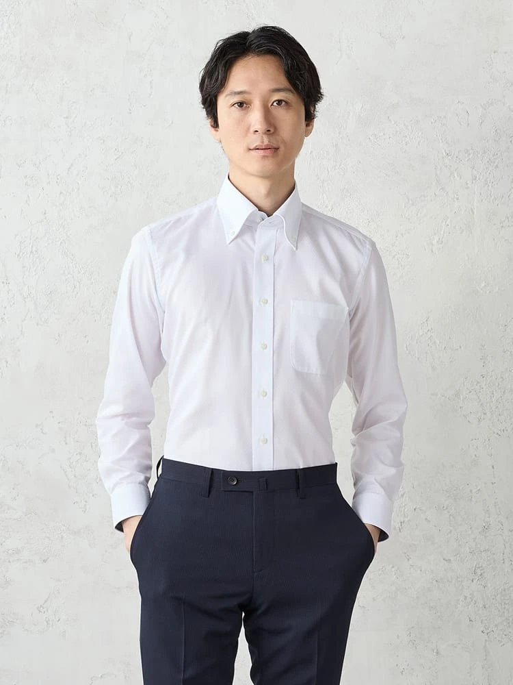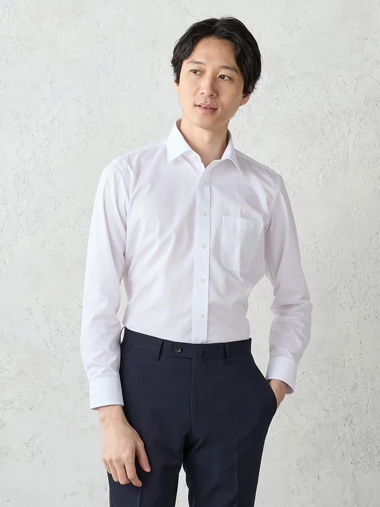 形態安定機能が施されており、洗濯後もシワになりにくく、常にきれいなシルエットを保てます。