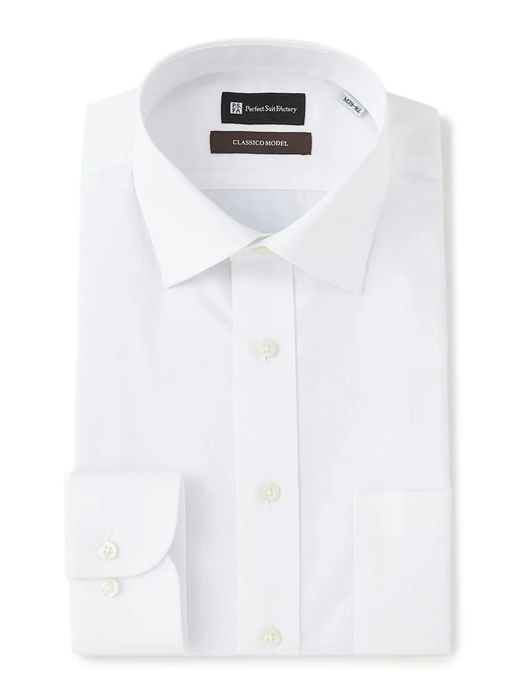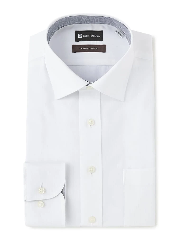 【ノンアイロン】長袖ワイシャツ【クラシコ】綿100%ジャガードシリーズホワイト