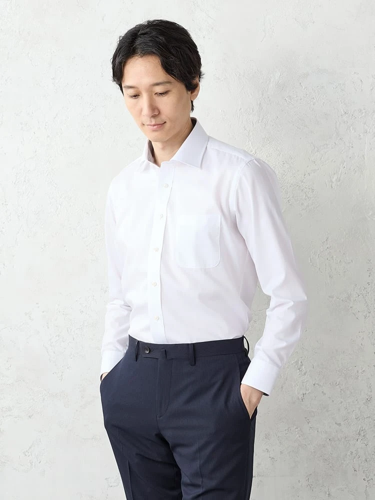 【完全ノーアイロン】長袖アイシャツセミワイドホワイト/サックスWEB限定
