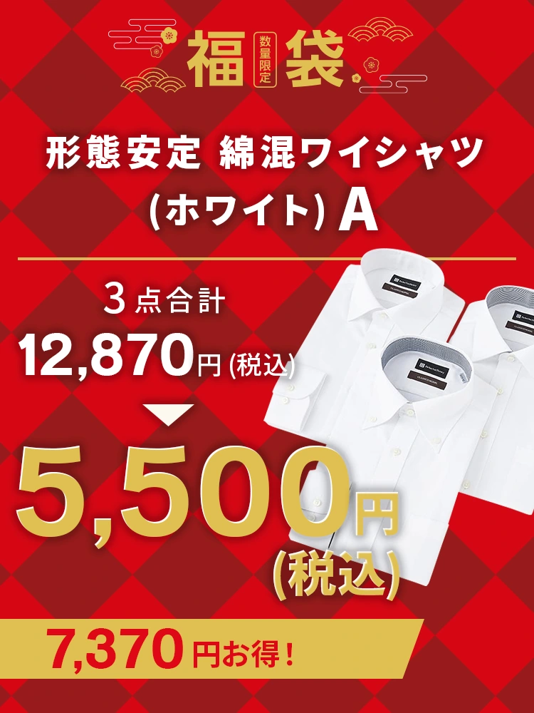 【2026福袋/すぐ届く】形態安定綿混ワイシャツ3枚セット【ホワイト】A