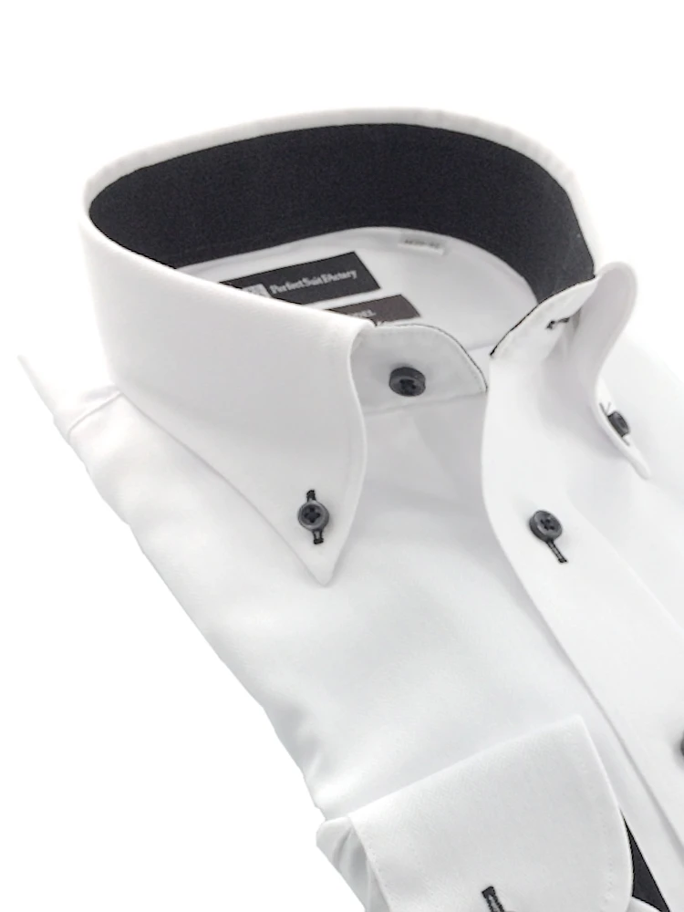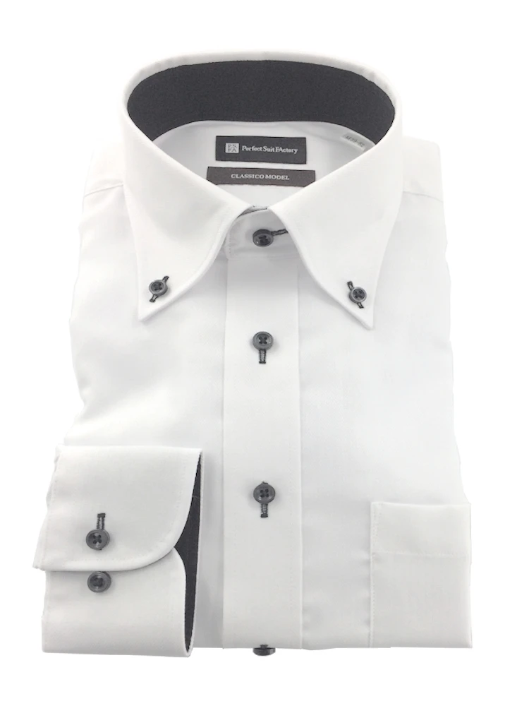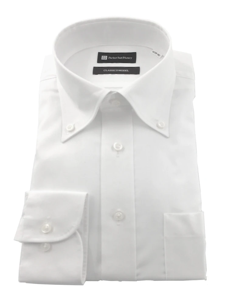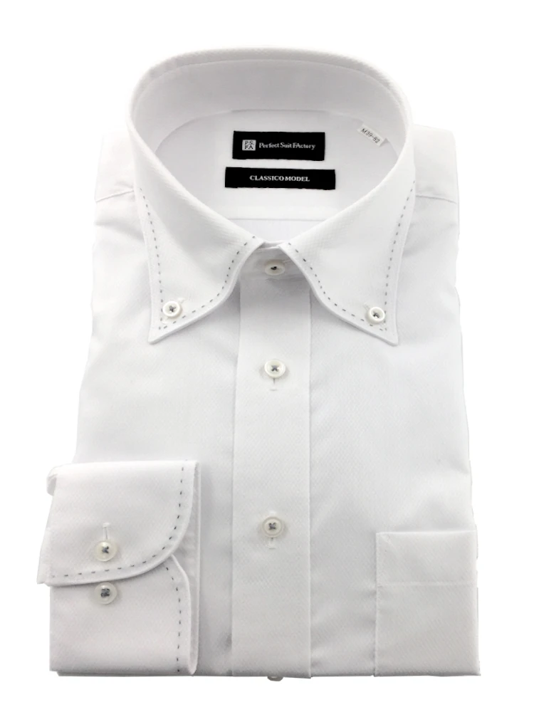 【完全ノーアイロン】長袖アイシャツ織柄ボタンダウンホワイト<2点で1,000円OFF/3点で2,000円OFF!>