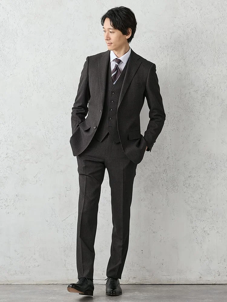 ビジネススタイルを格調高く映し出すジャケット・ベスト・パンツの3ピースセット。