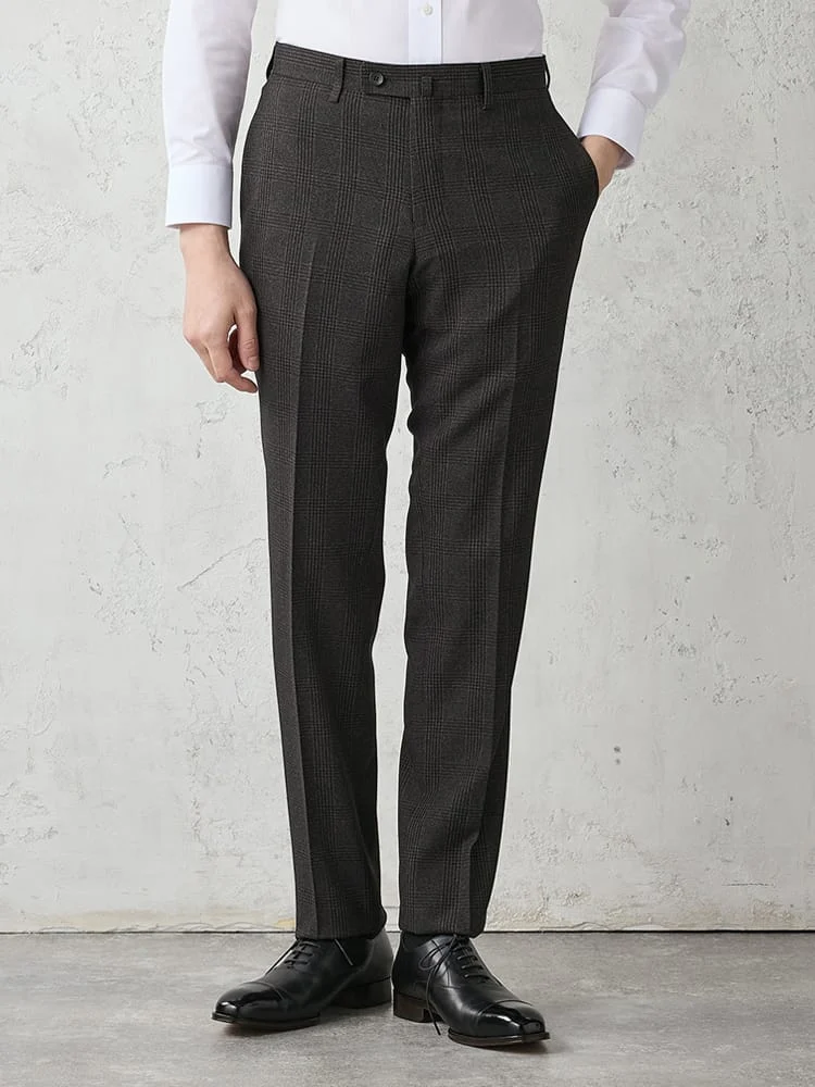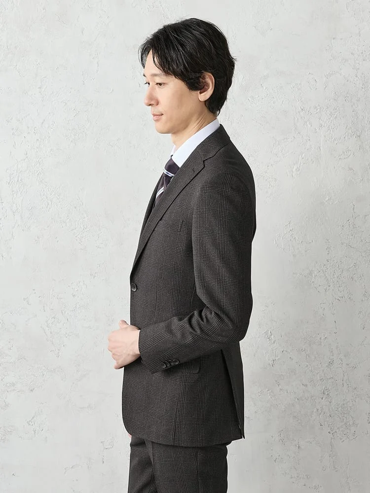 クラシカルなグレンチェック柄を用いた、起毛感のある生地で秋冬らしい温もりも備えています。