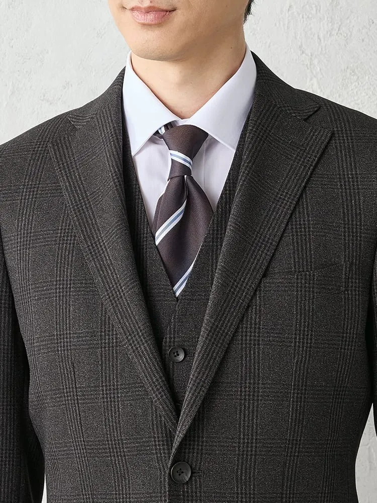 【上下洗える/ベスト付】スリーピーススーツ【クラシコ】グレンチェック グレー