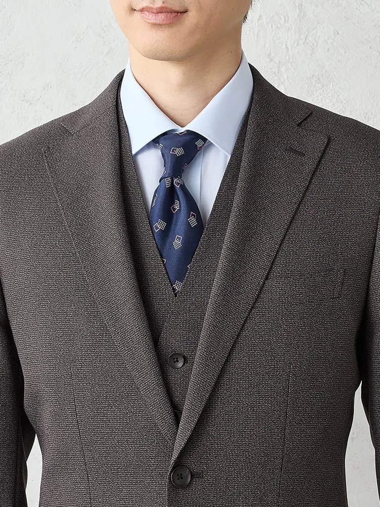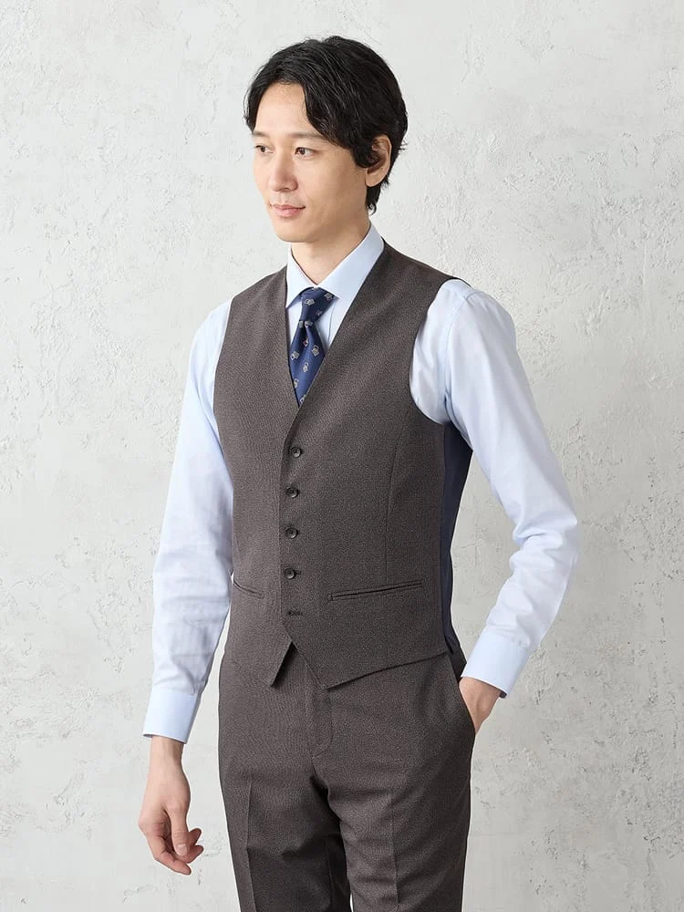 【上下洗える/ベスト付】スリーピーススーツ【クラシコ】小柄 ブラウン