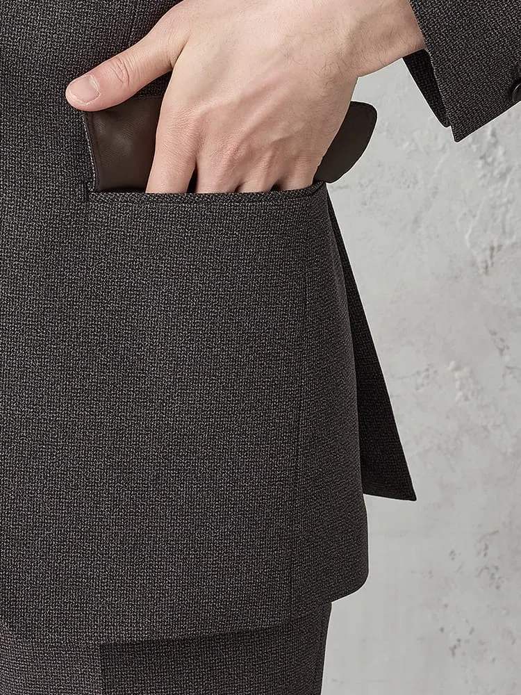 スリーピースセットで、スーツ全体を簡単にコーディネートできます。ビジネスやフォーマルな場面に最適です。