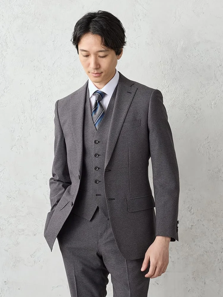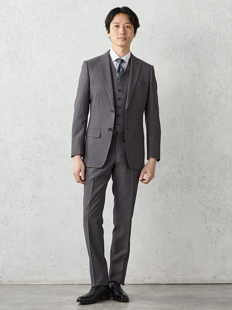 【上下洗える/ベスト付】スリーピーススーツ【クラシコ】小柄 グレー