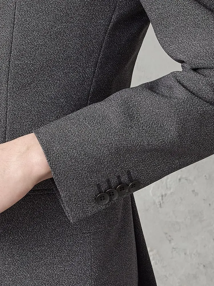 スリーピースセットで、スーツ全体を簡単にコーディネートできます。ビジネスやフォーマルな場面に最適です。