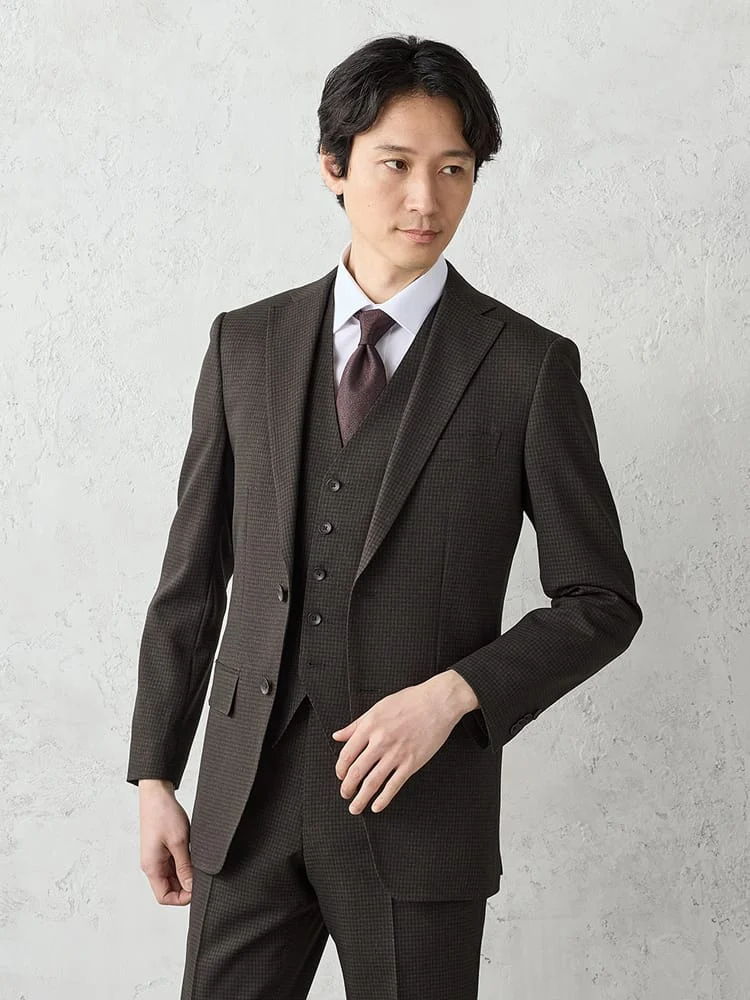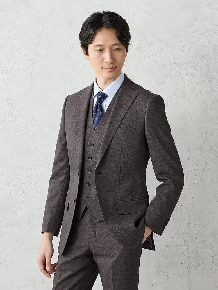 【上下洗える/ベスト付】スリーピーススーツ【クラシコ】小柄ブラウン