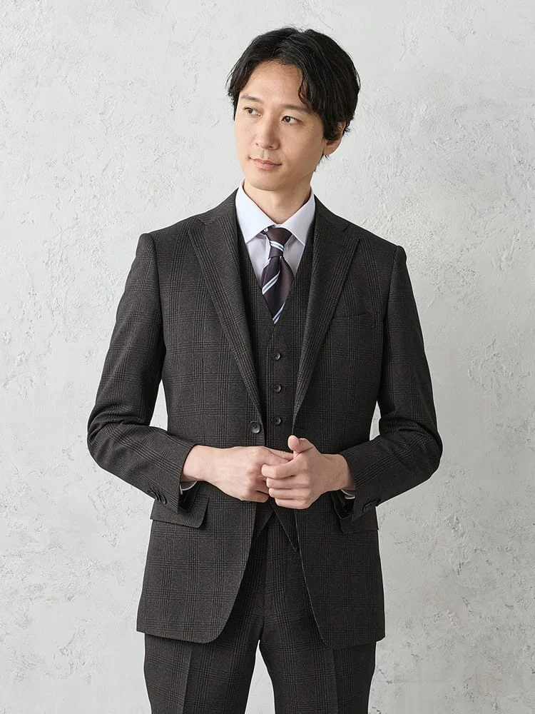 【上下洗える/ベスト付】スリーピーススーツ【クラシコ】グレンチェックグレー