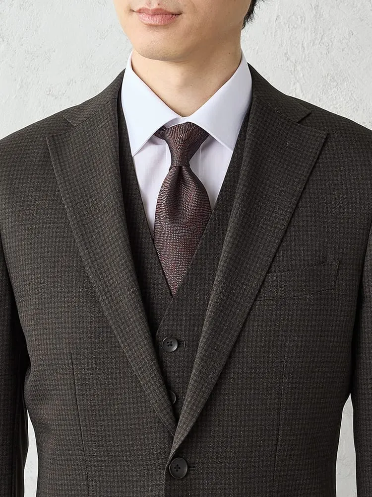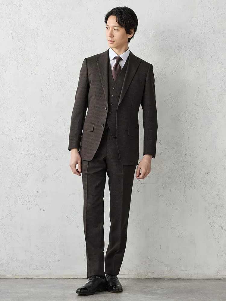 【上下洗える/ベスト付】スリーピーススーツ【クラシコ】小柄 ブラウン