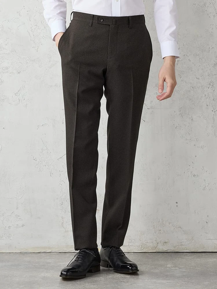 スラックスはノータック仕様になっているので、腰まわりをすっきりと洗練された印象に見せてくれます。