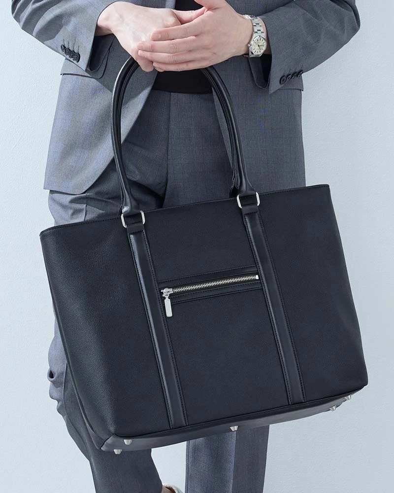 前ポケット ビジネストートバッグ ブラック/ネイビー(ブラック)