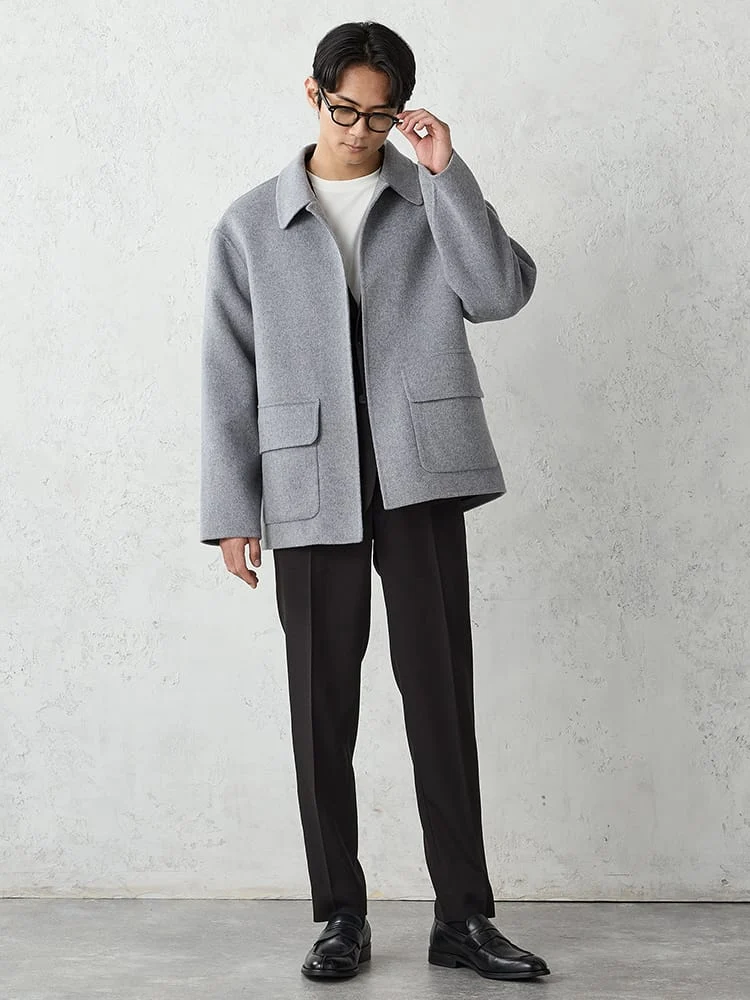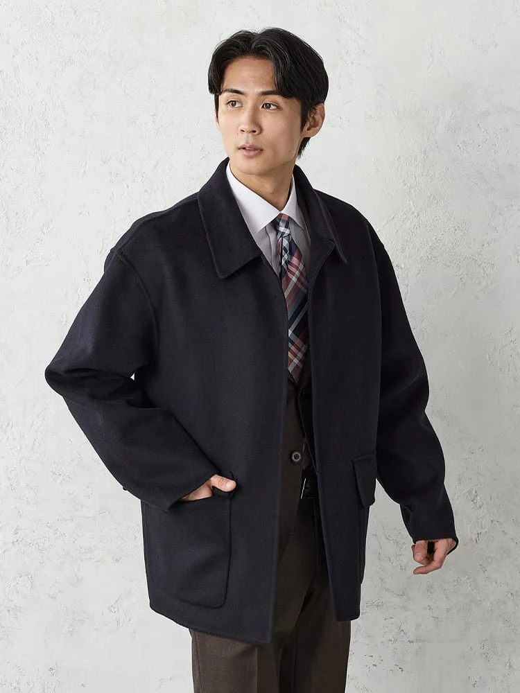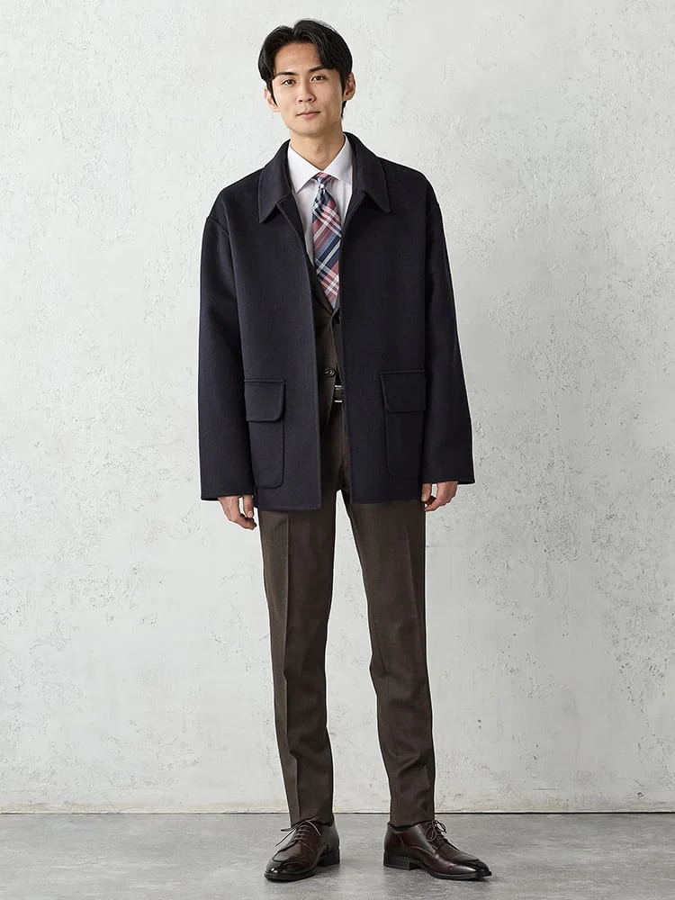 ややオーバー気味のシルエットでスーツを下に着てもごわつかず、快適にお過ごしいただけます。