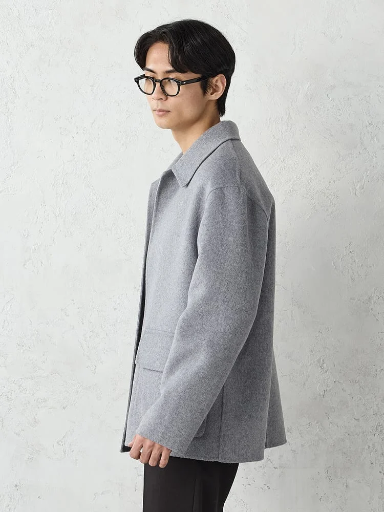 ウール ダブルフェイスカバーコート グレー/ネイビー(L.グレー)