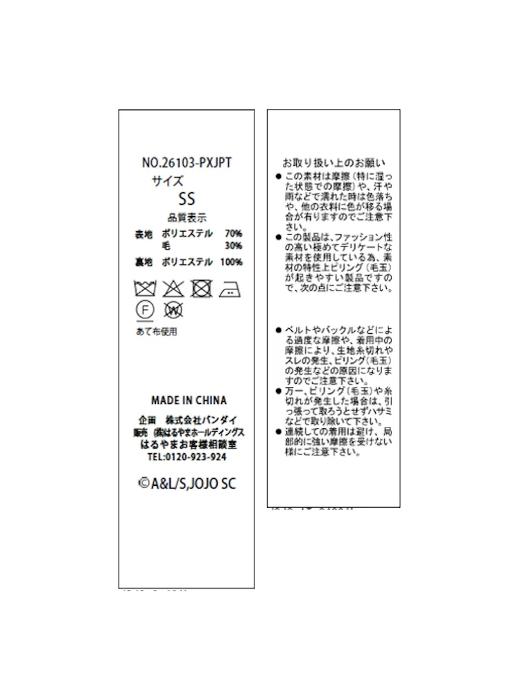 アニメ『ジョジョの奇妙な冒険 スターダストクルセイダース』セットアップパンツ【空条承太郎】