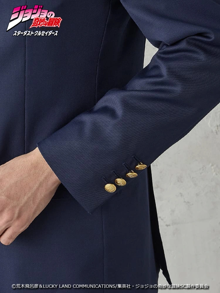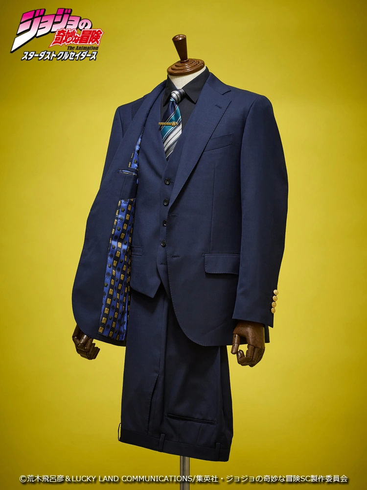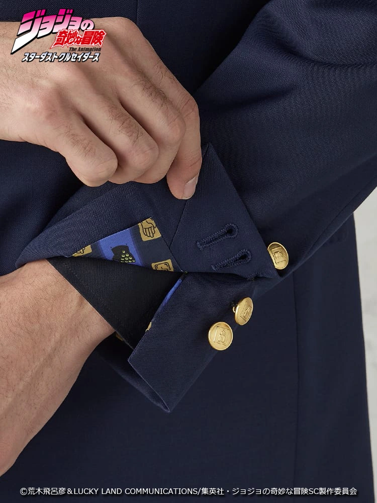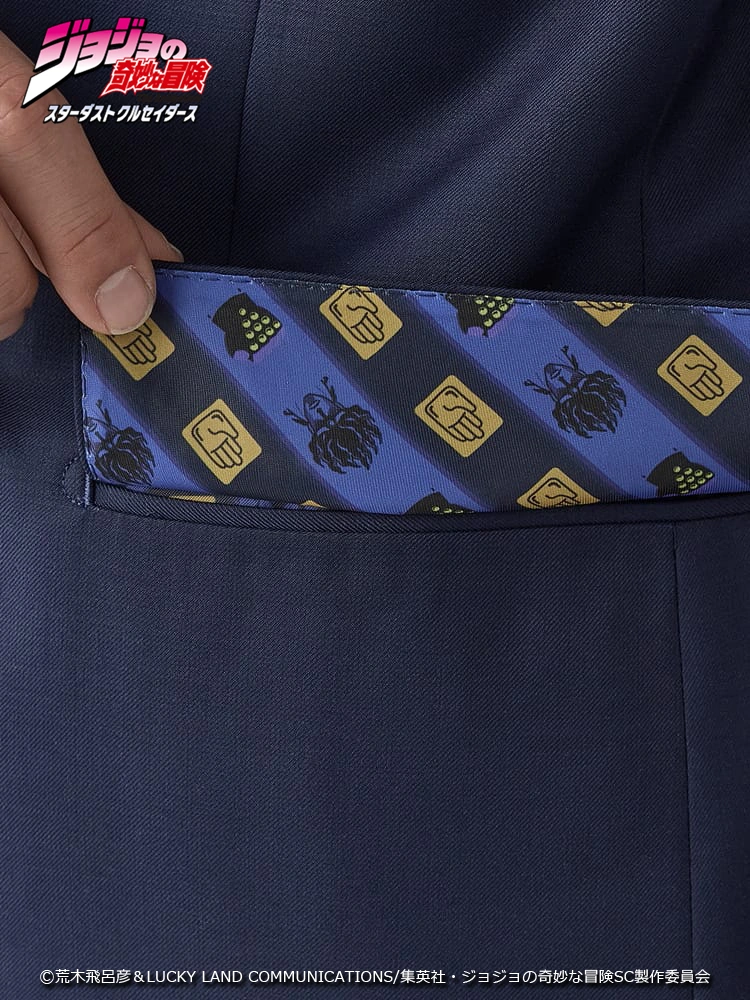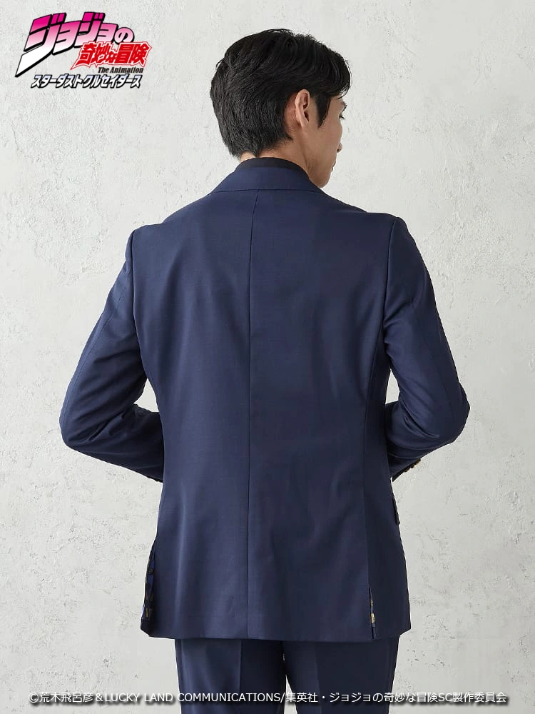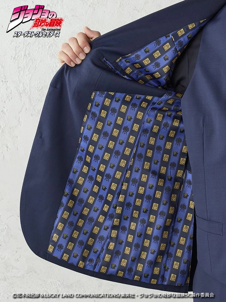 現代のサラリーマンに向けた新しいスーツをコンセプトに、メインキャラクターである【空条承太郎/スタープラチナ】をモチーフにしたジャケットです。