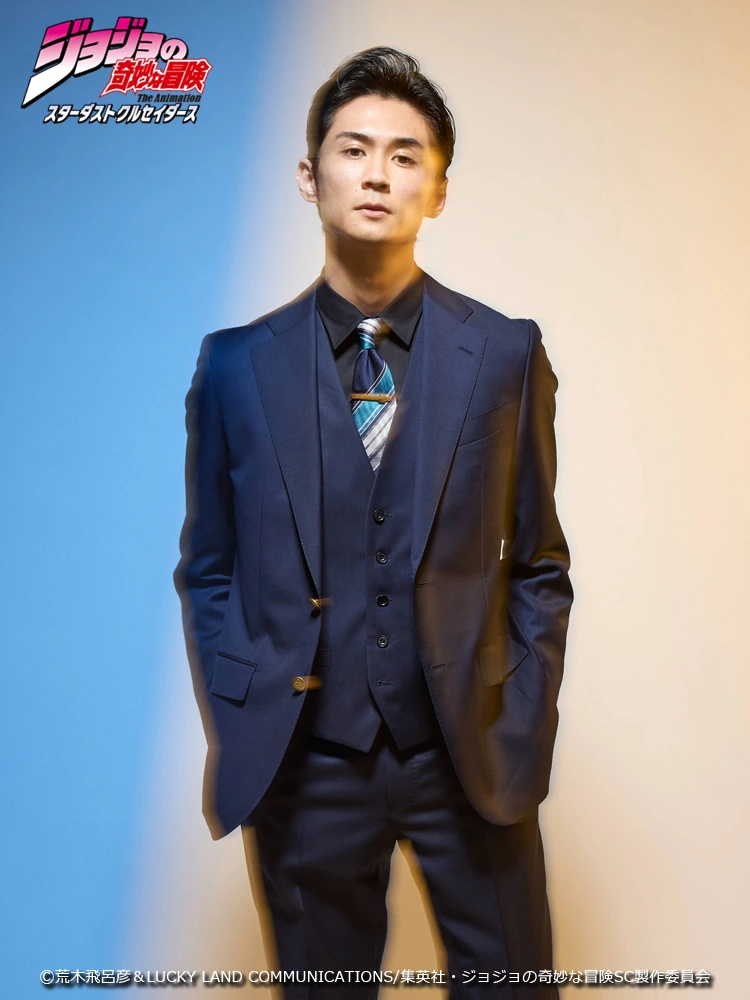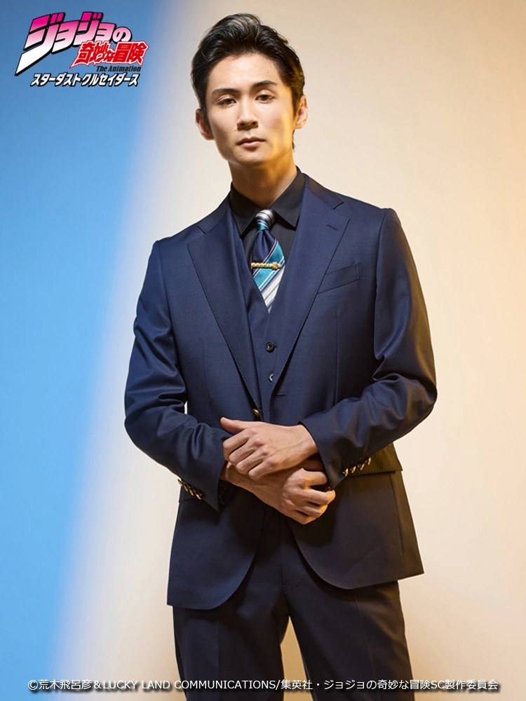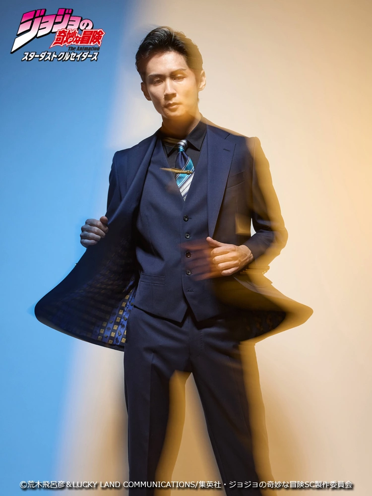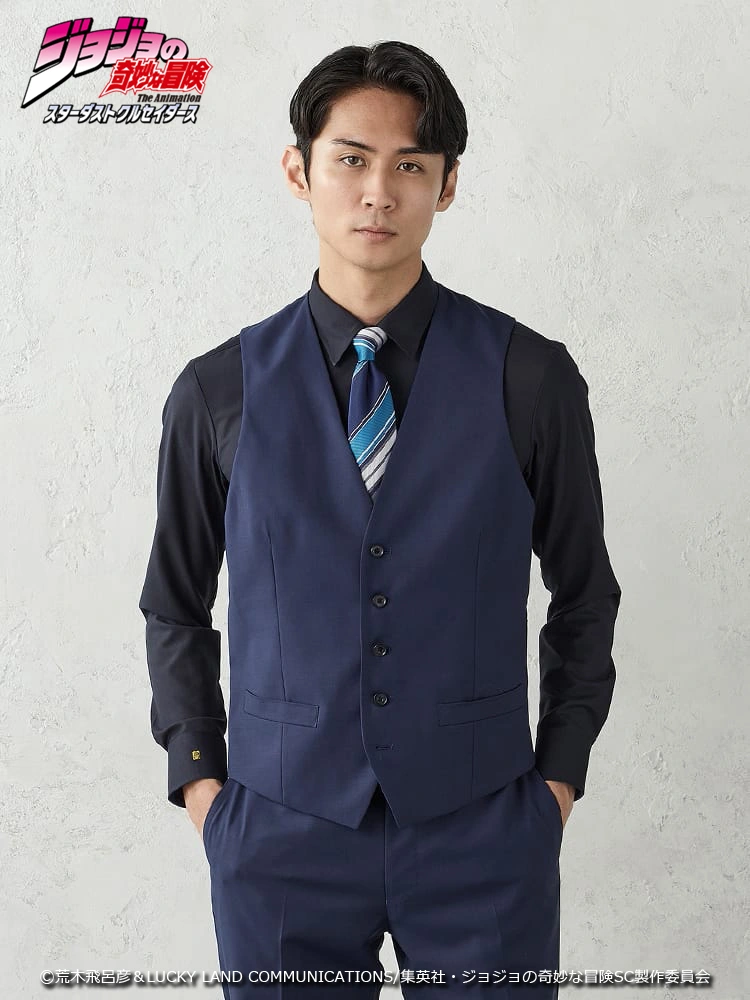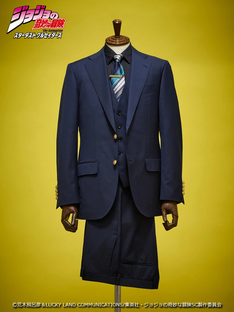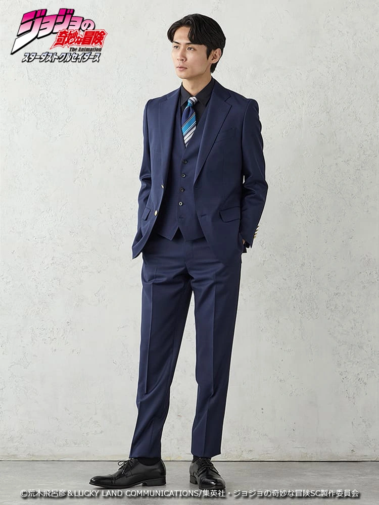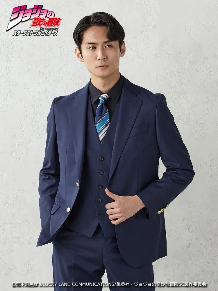 現代のサラリーマンに向けた新しいスーツをコンセプトに、メインキャラクターである【空条承太郎/スタープラチナ】をモチーフにしたジャケットです。