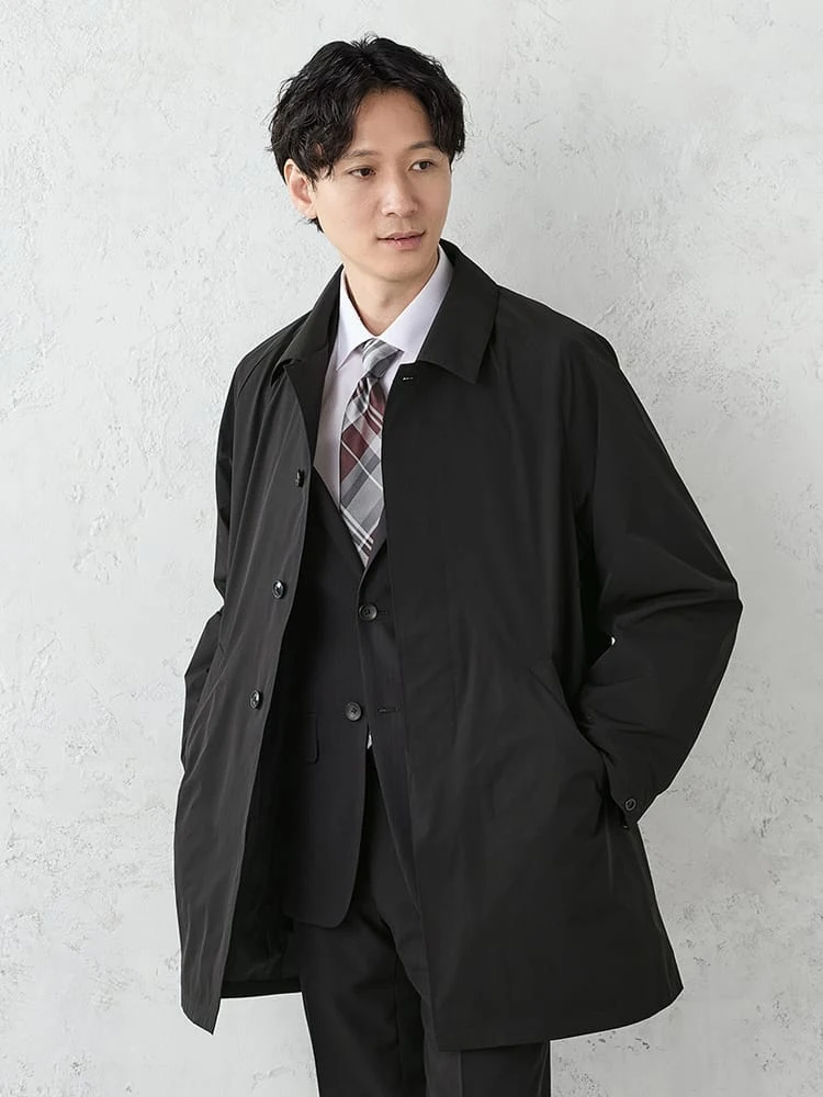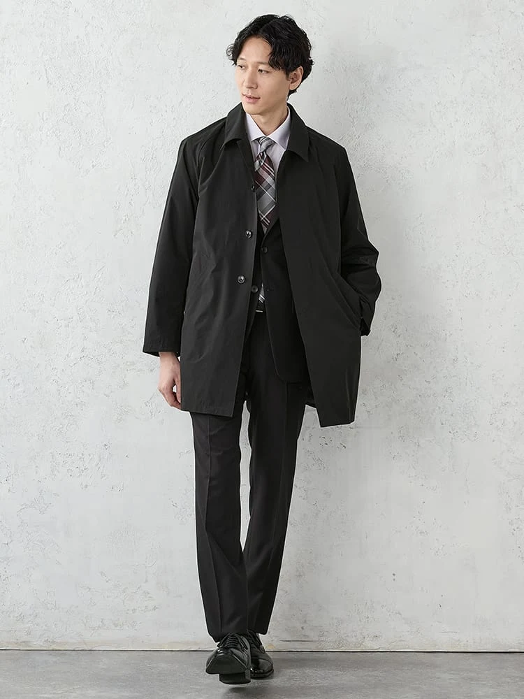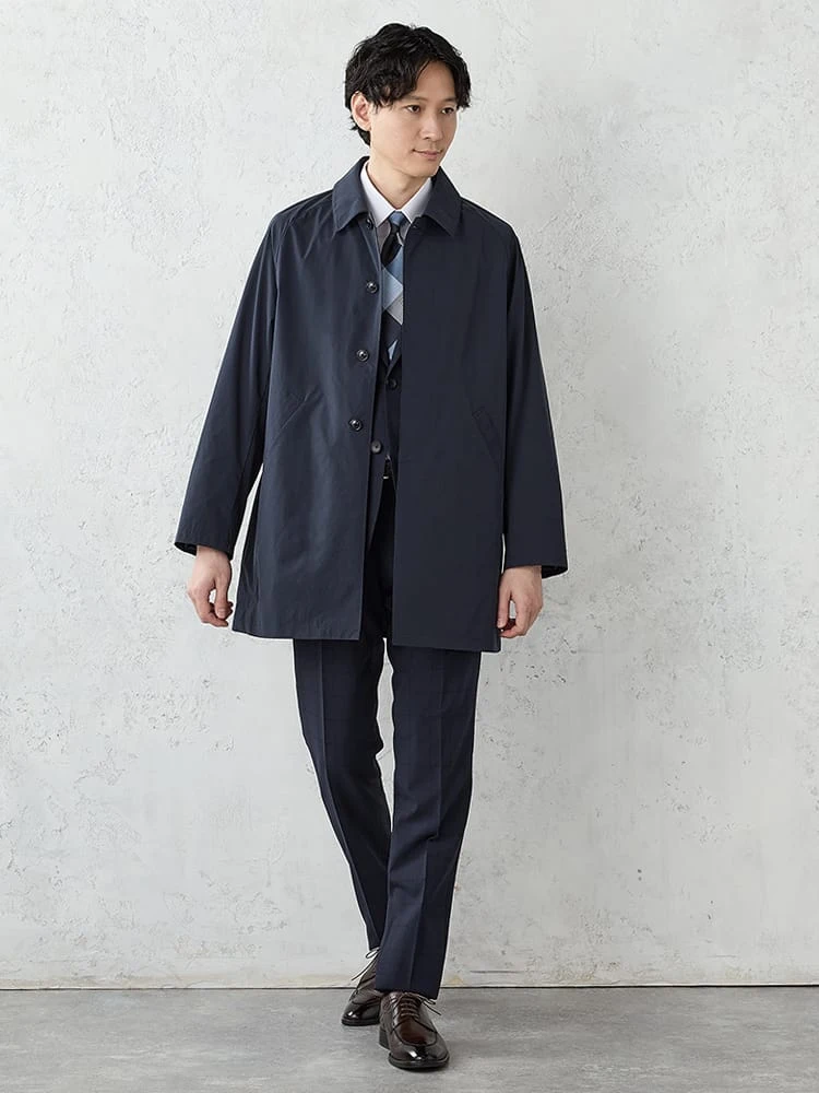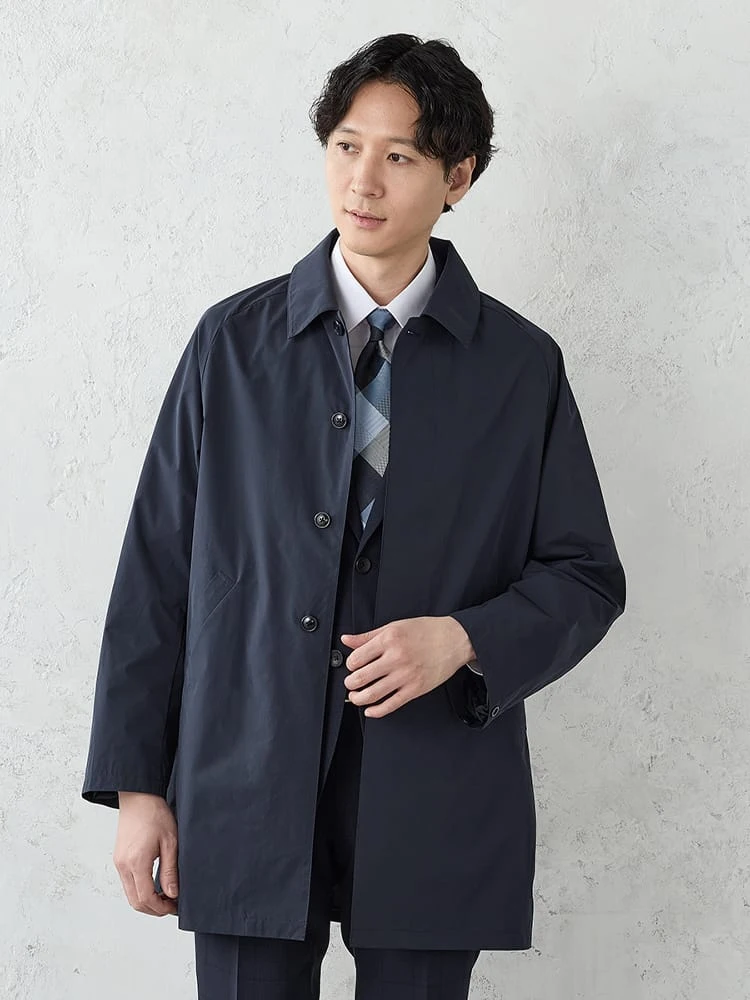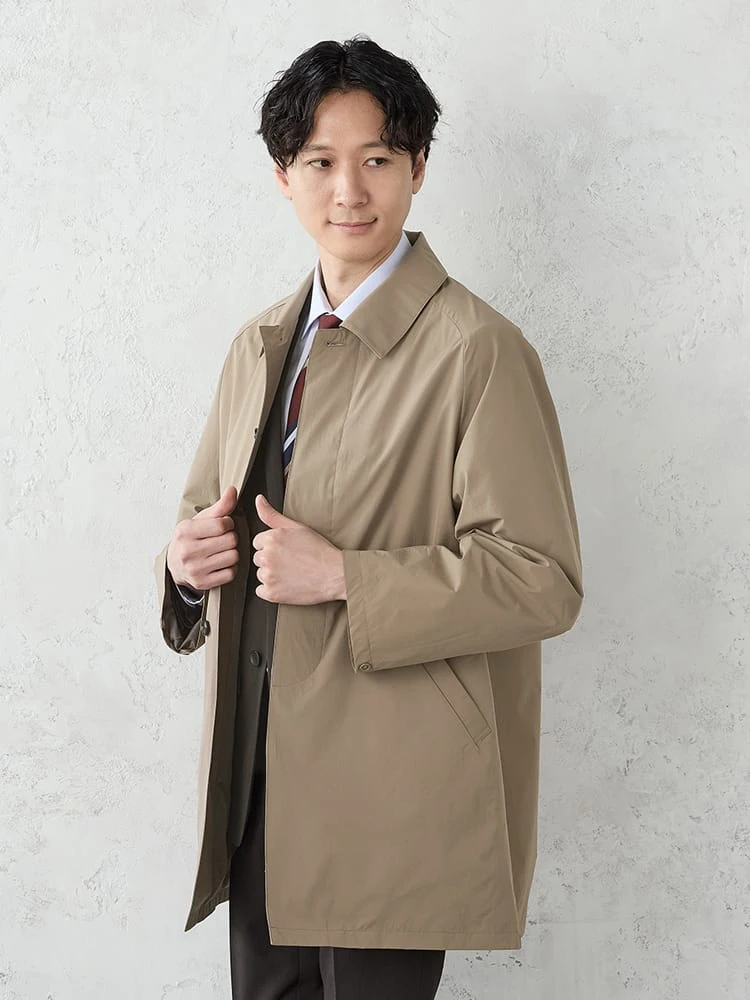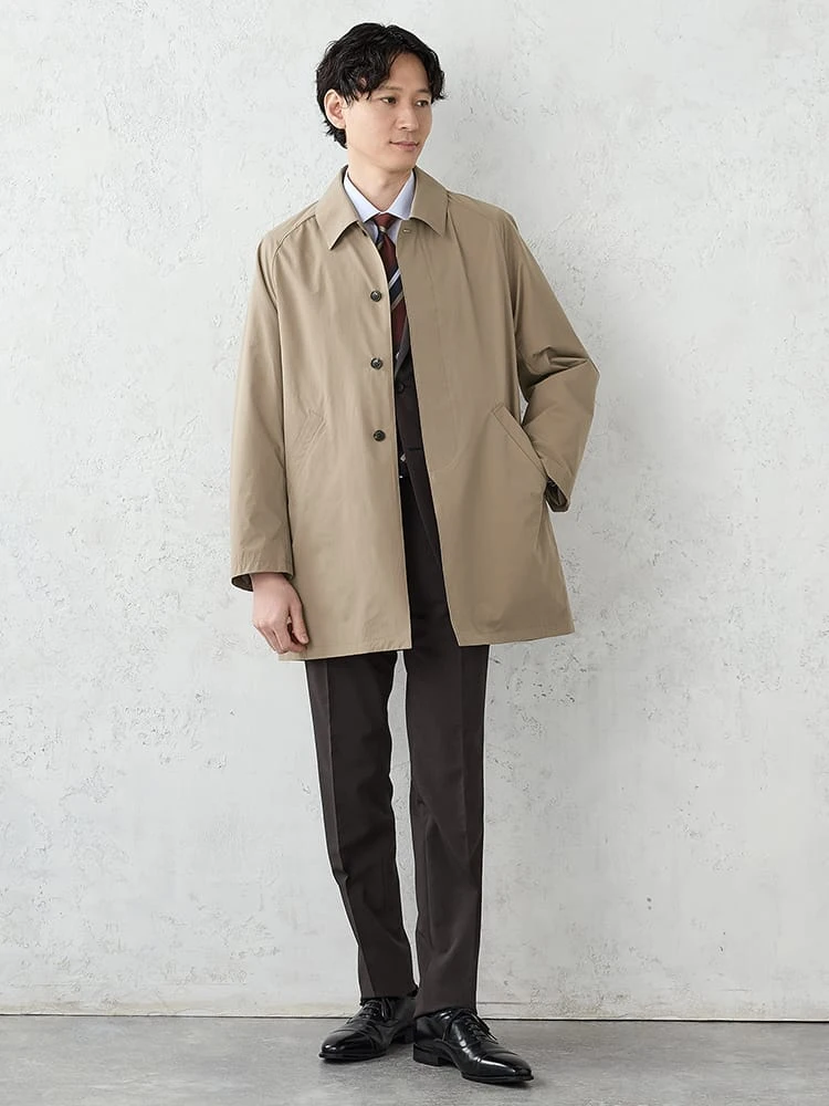 着こなしやすいベーシックなステンカラーコート。