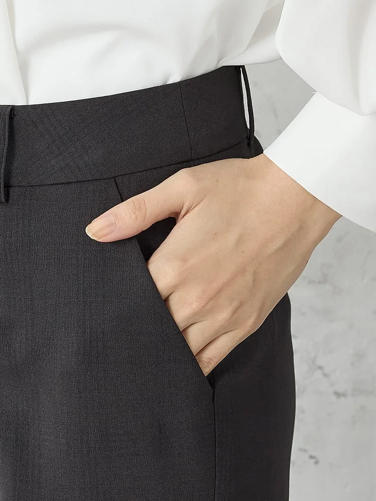 ノータックの腰回りとテーパードライン、センタープレスによって、すっきりと穿きこなせます。