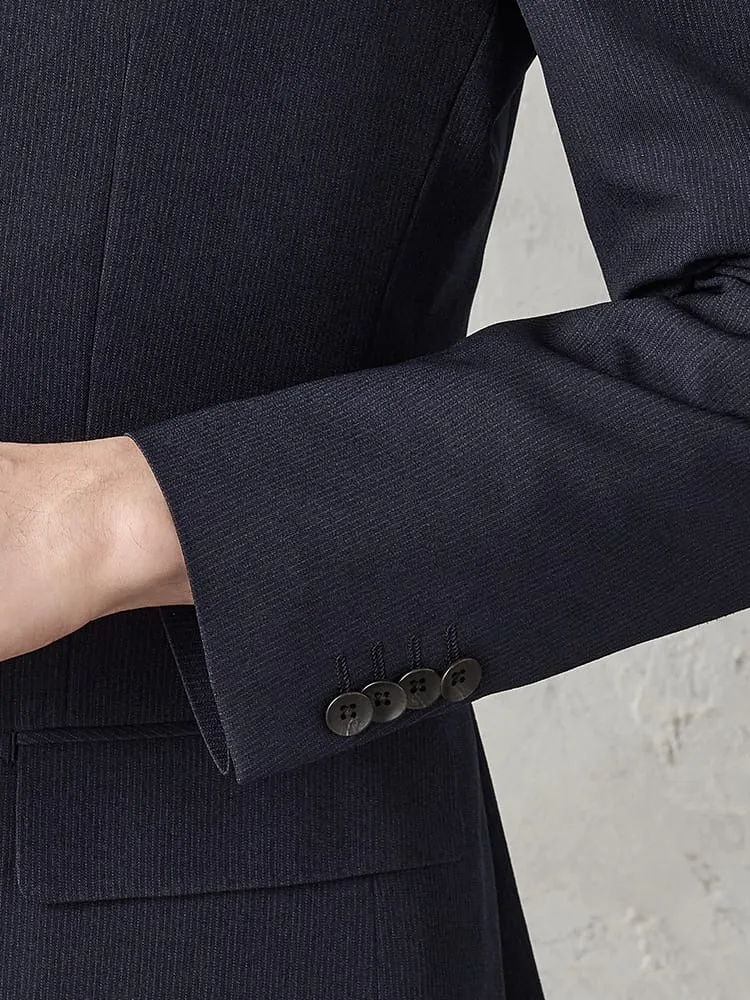 【上下洗える】ツーパンツスーツ【クラシコ】ストライプ ネイビー