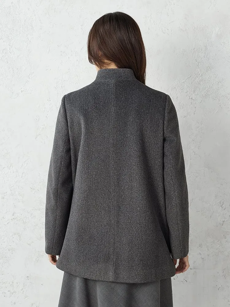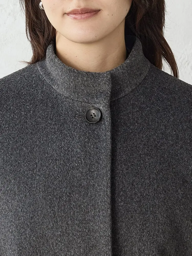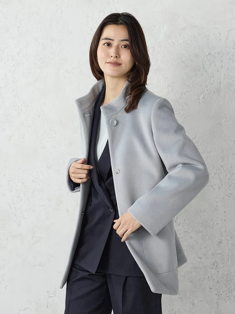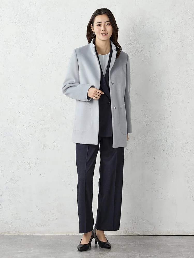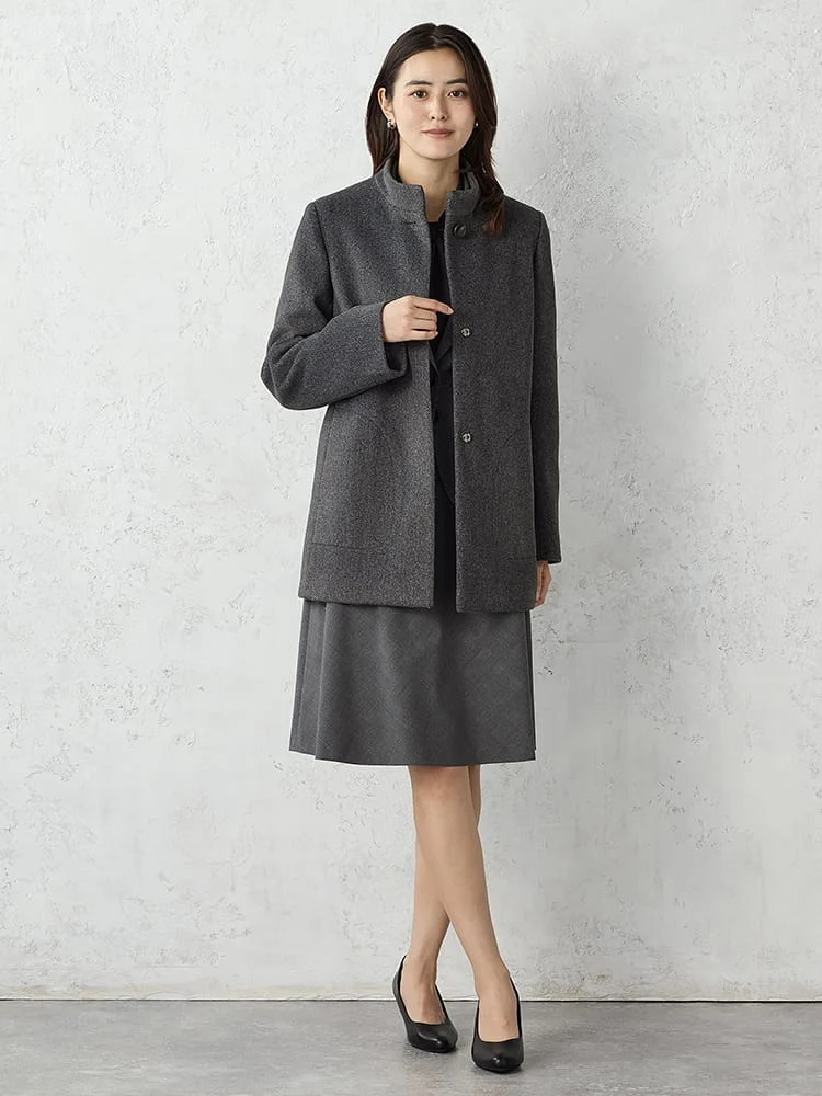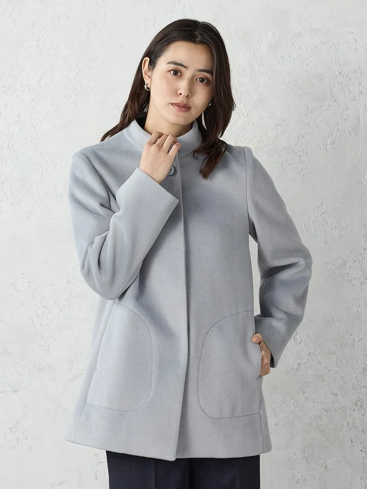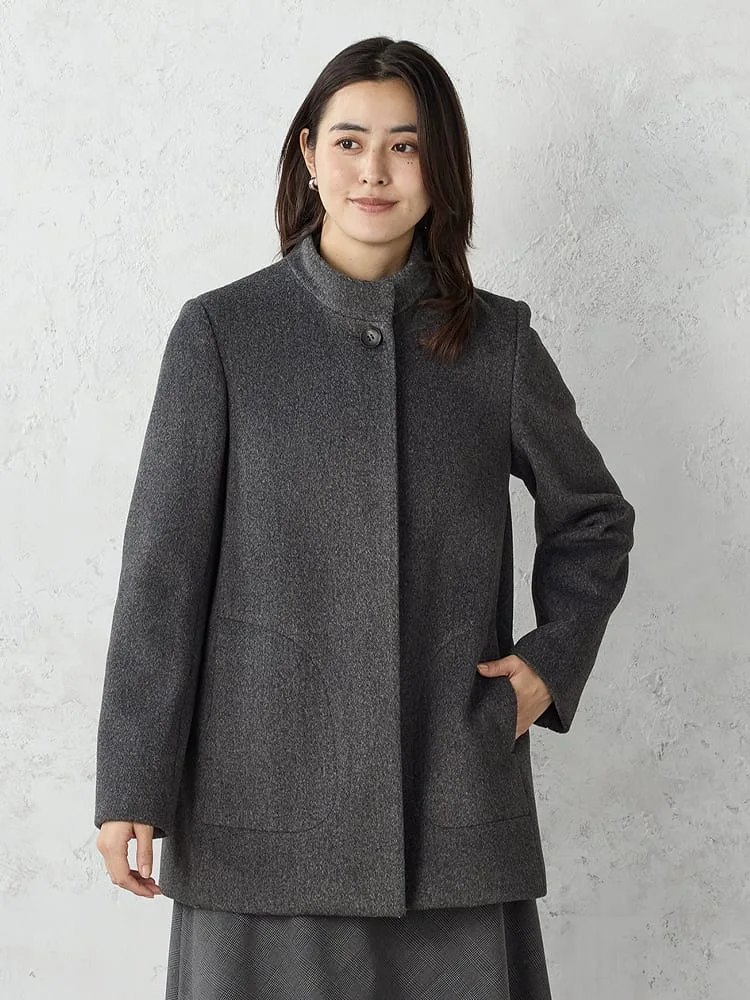 大人っぽくシックな雰囲気にまとまったスタンドカラーのコート。
