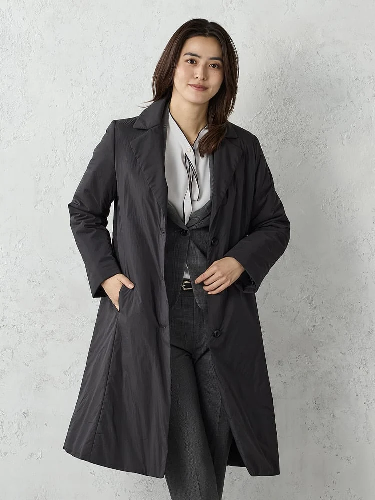 ナイロン中綿チェスターコート ブラック/ネイビー(ブラック)