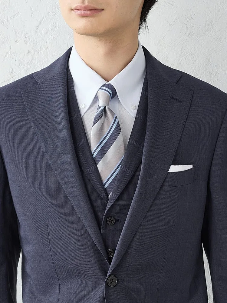 スリーピースセットで、スーツ全体を簡単にコーディネートできます。ビジネスやフォーマルな場面に最適です。