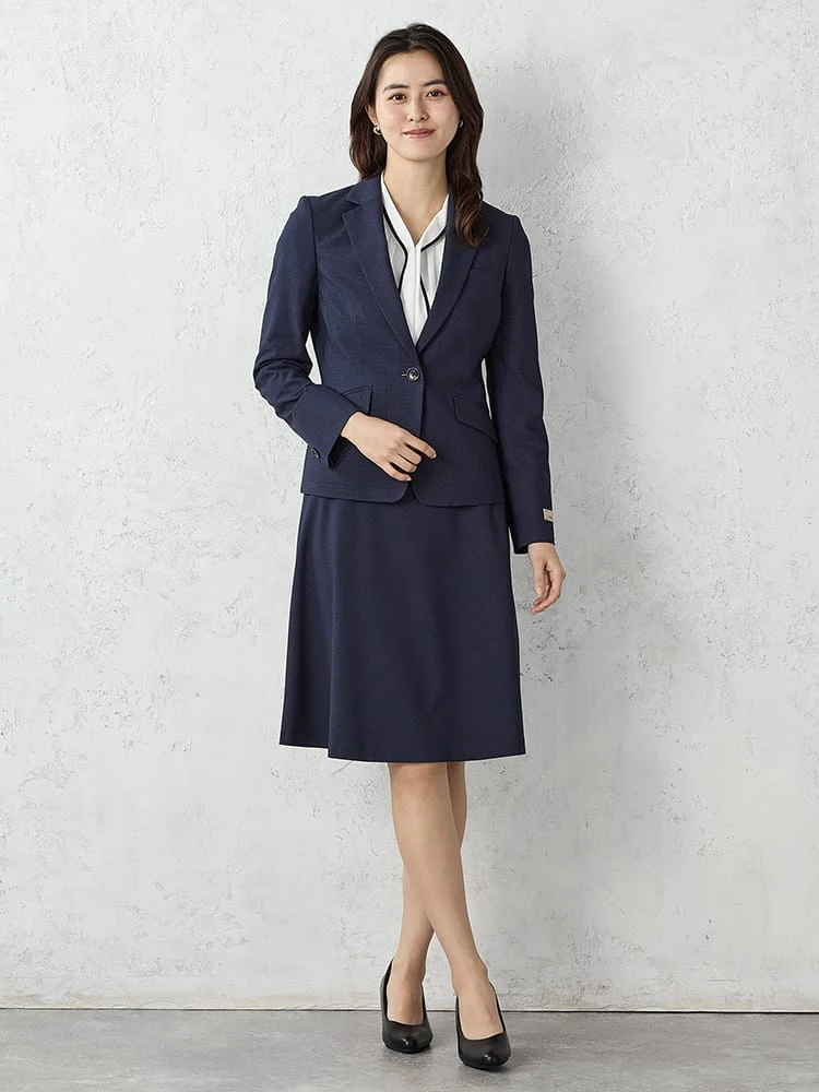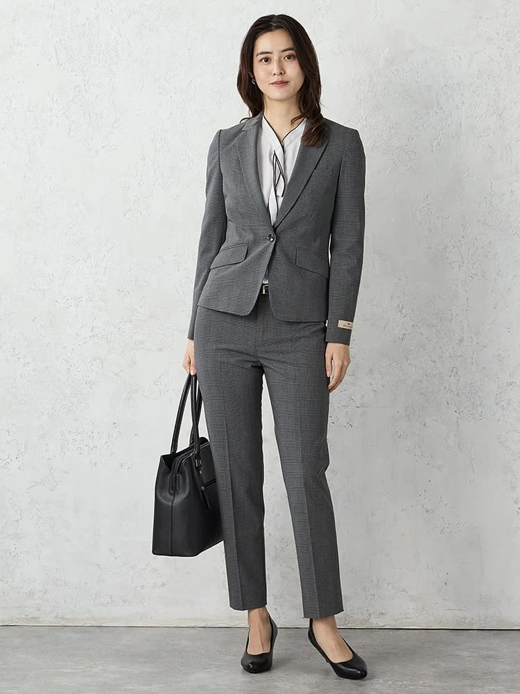 フロントはワンボタン留めを採用して、女性らしいルックに仕上げています。