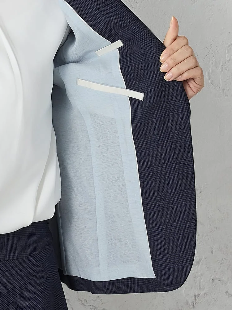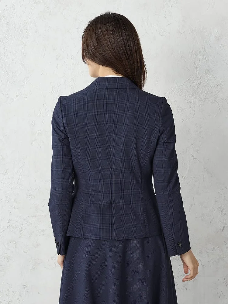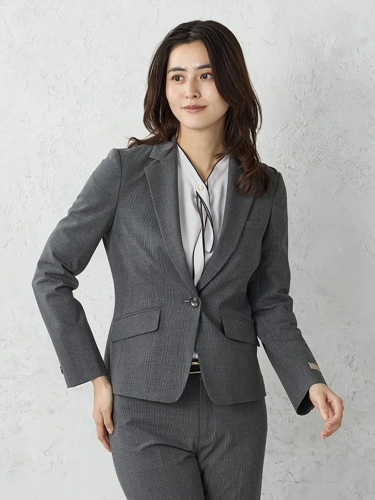 シックな配色でまとまったグレンチェック柄のテーラードジャケット。