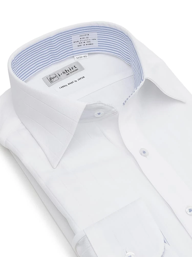 【完全ノーアイロン】長袖アイシャツツイルホワイト/サックス<3点で4,000円OFF!>