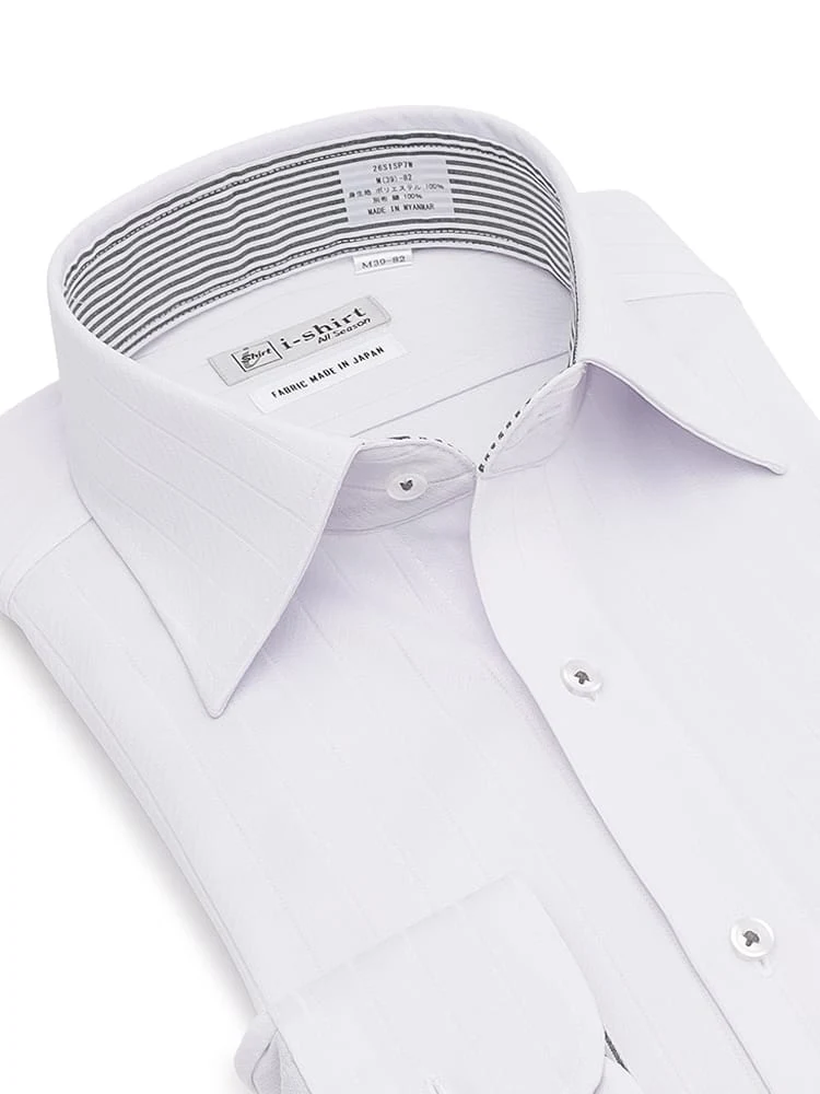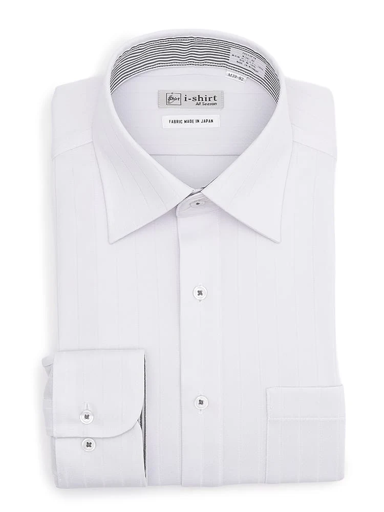 【完全ノーアイロン】長袖アイシャツ 針抜きストライプ<3点で4,000円OFF!>(ホワイト)