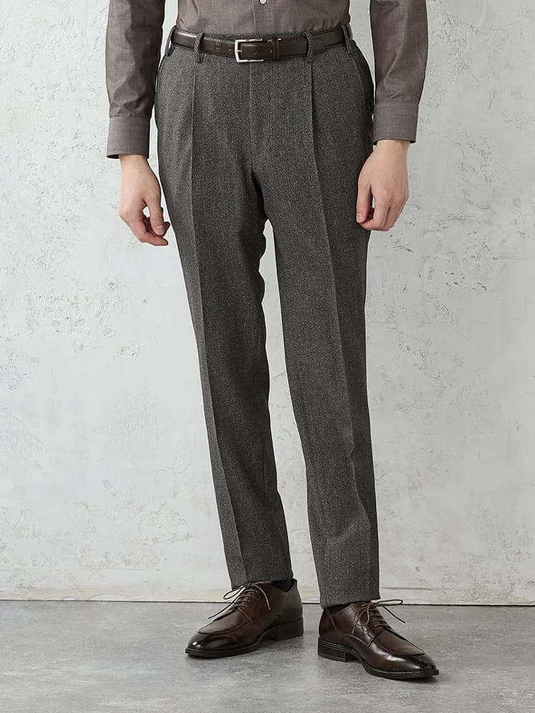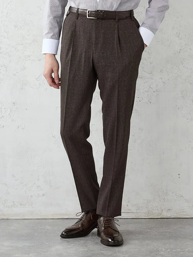 TRANSCONTINENTSウールサキソニーセットアップパンツベージュ/ブラウン