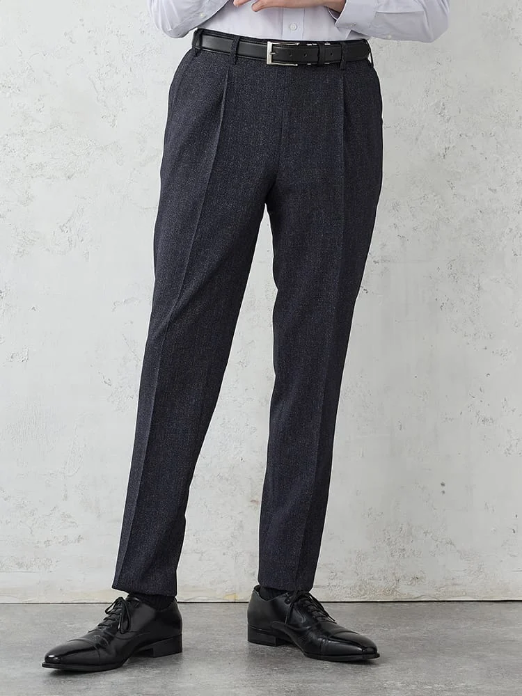 【洗える】クラシコノータックパンツ無地ブラック/ネイビー