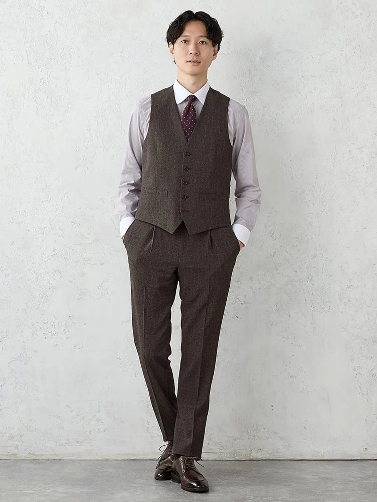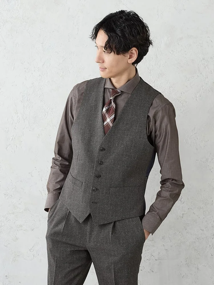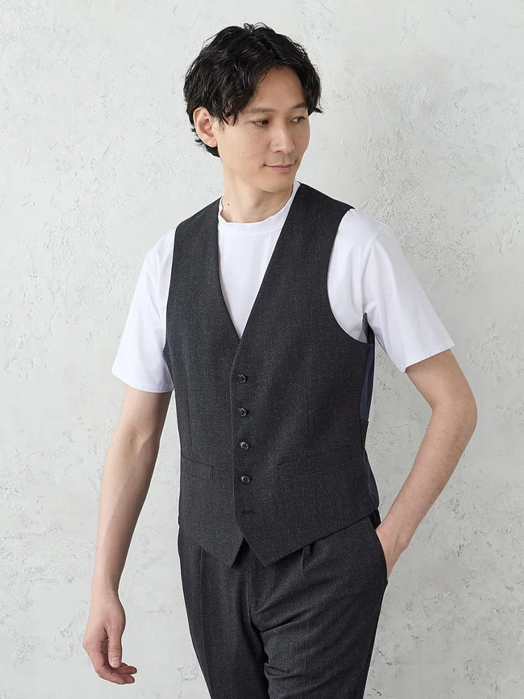 ジャケットのインに取り入れることでクラシカル感を演出できるベスト。