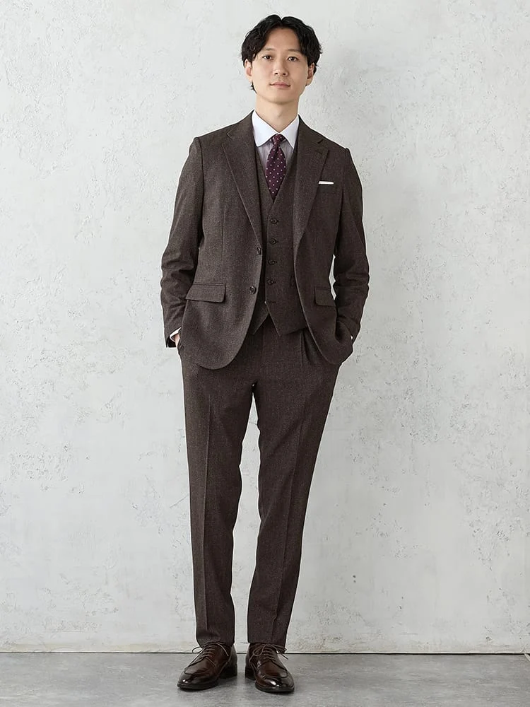 TRANSCONTINENTSウールサキソニーセットアップジャケットブラウン/ベージュ