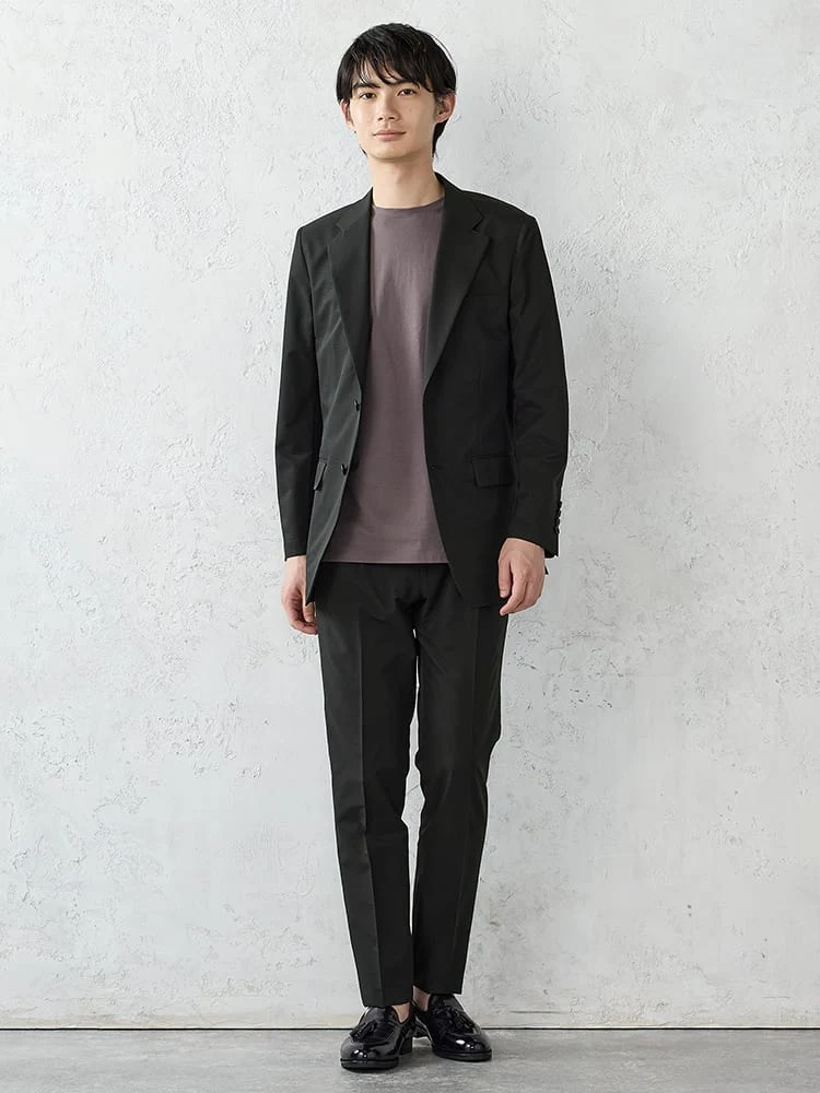 裾に向かって細くなるテーパードシルエットでスマートな装いに。